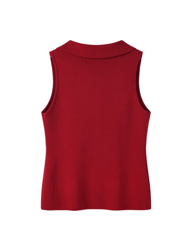 big-collar no-sleeve simple summer-knit 2color【NINE9416】