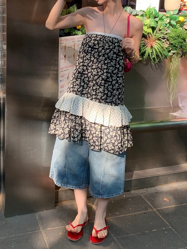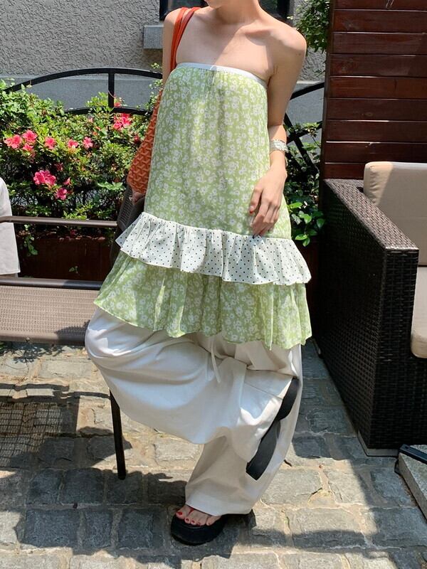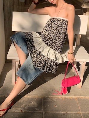 2way flowr dot long lace frill tops 2color【NINE9440】