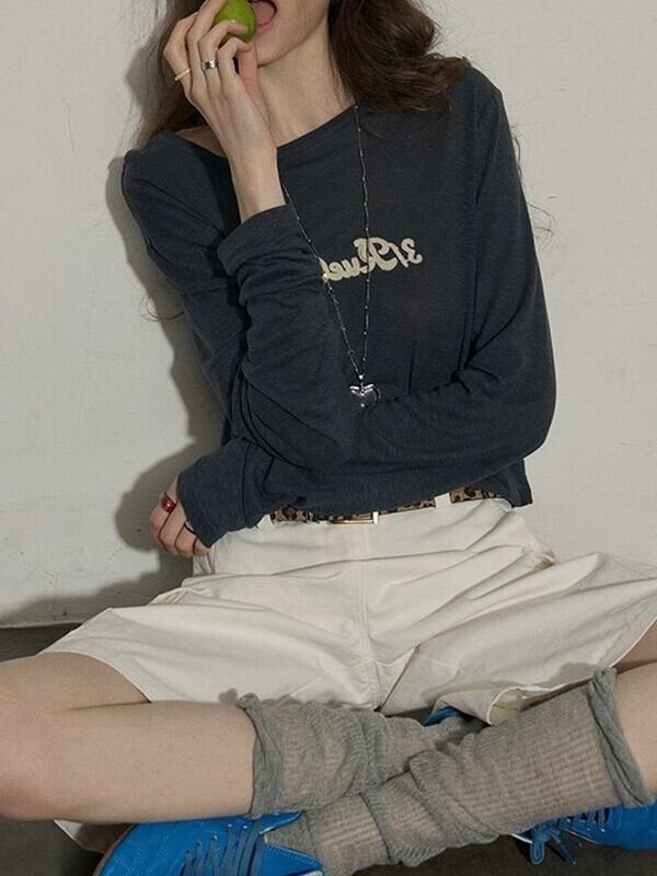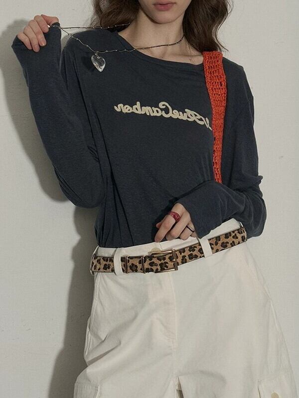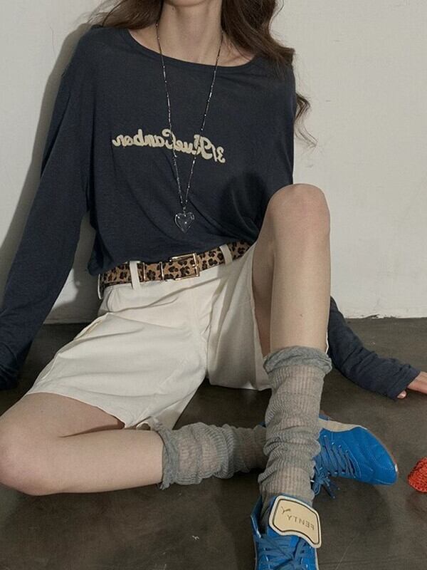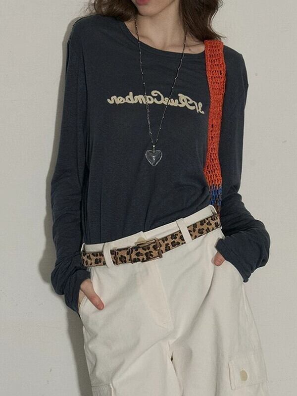 letter retro uv-cut long-t-shirt【NINE9496】