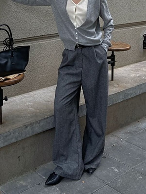 wool wide straight classy pants【NINE9522】