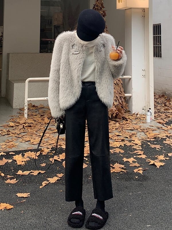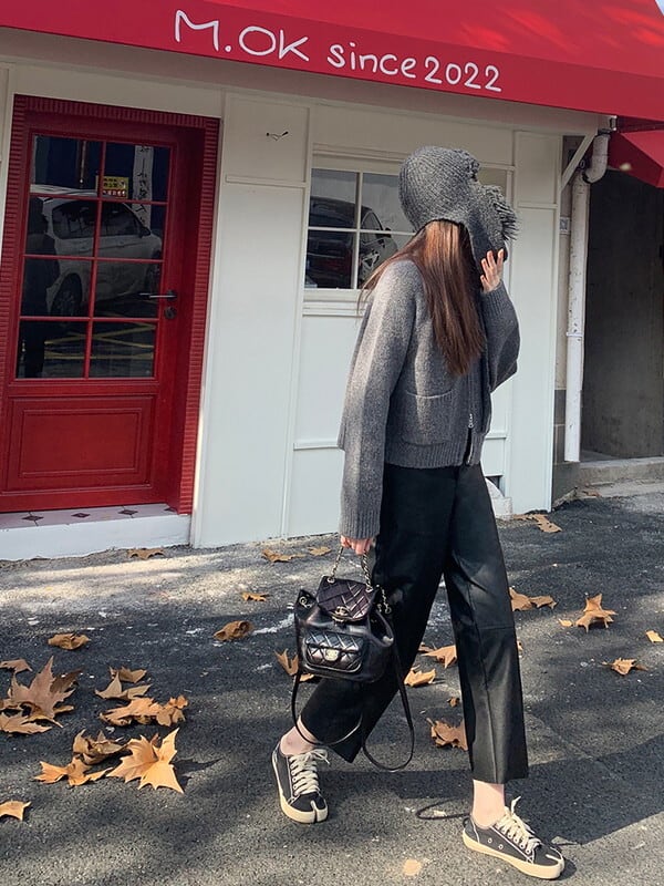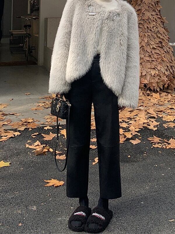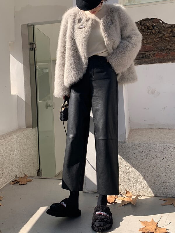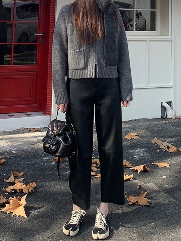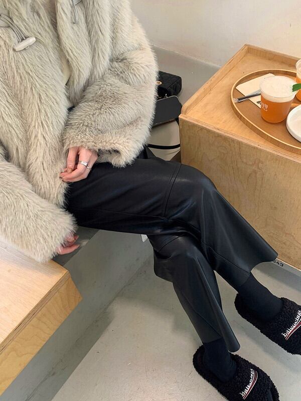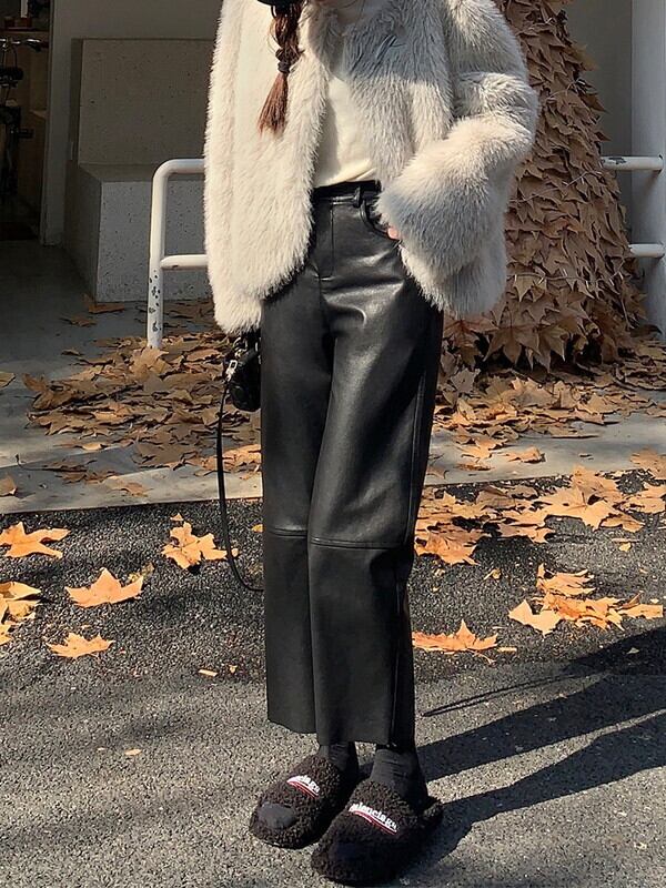 leather straight handsome pants【NINE9537】