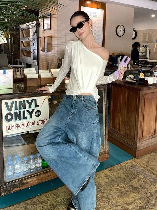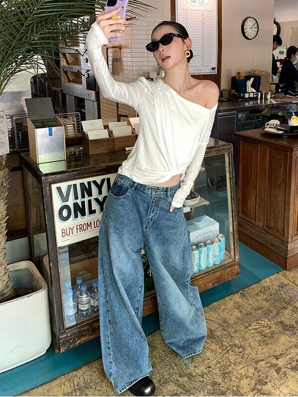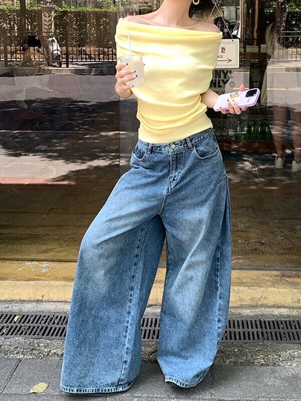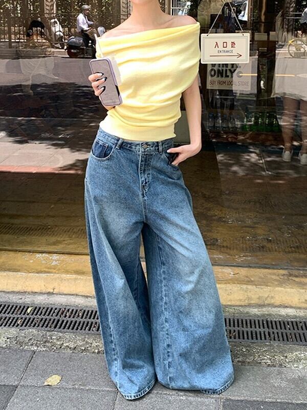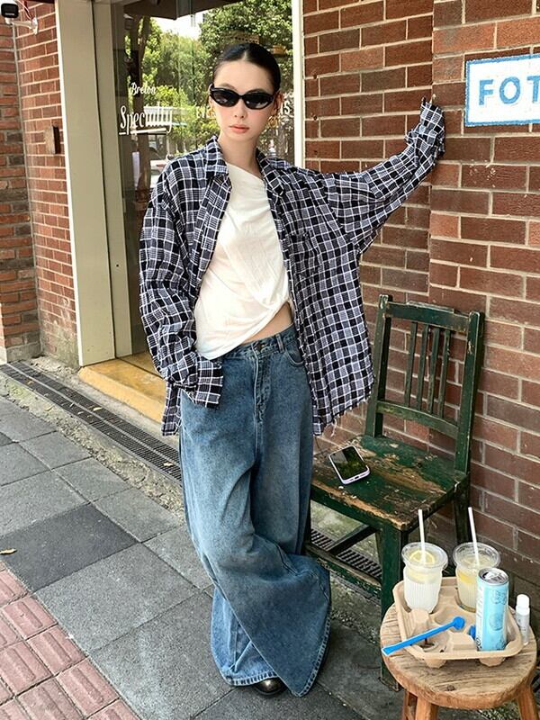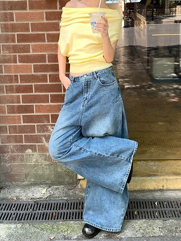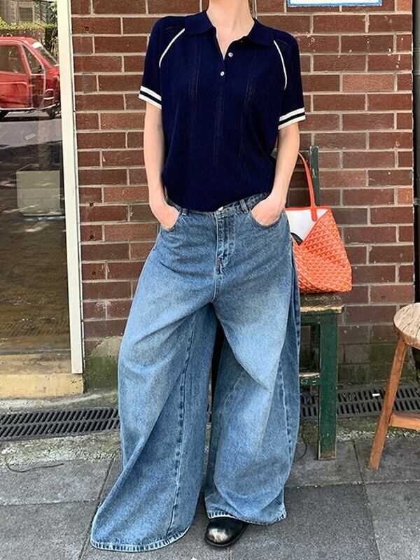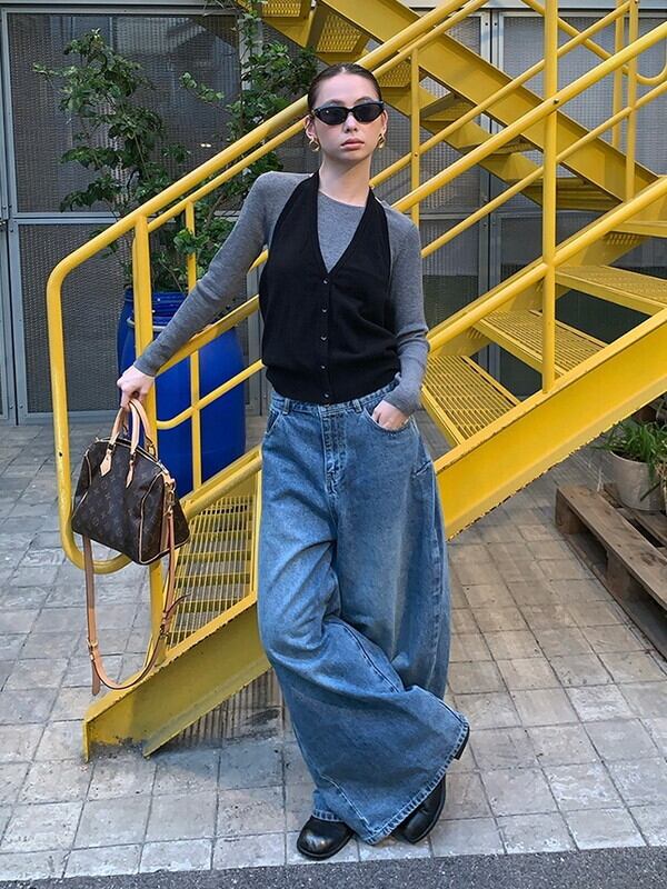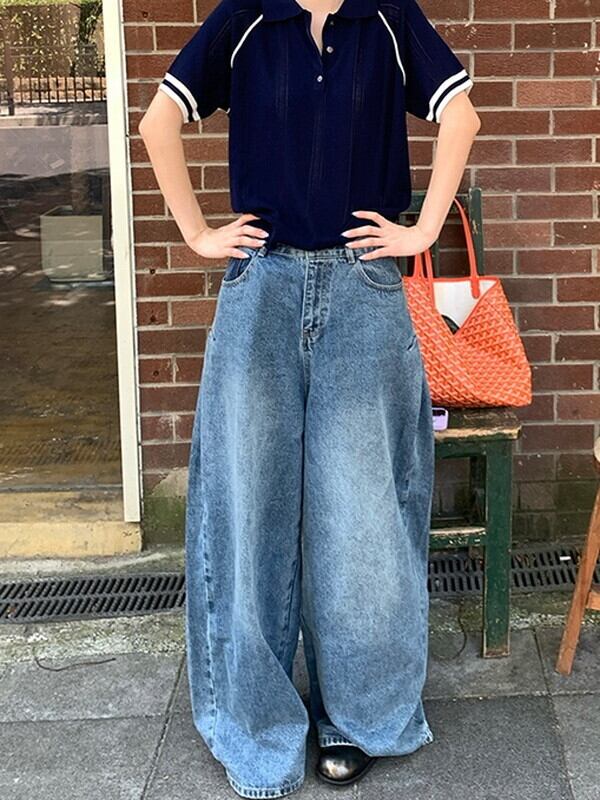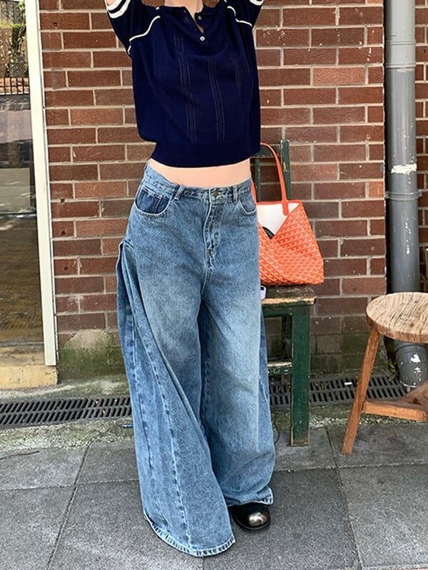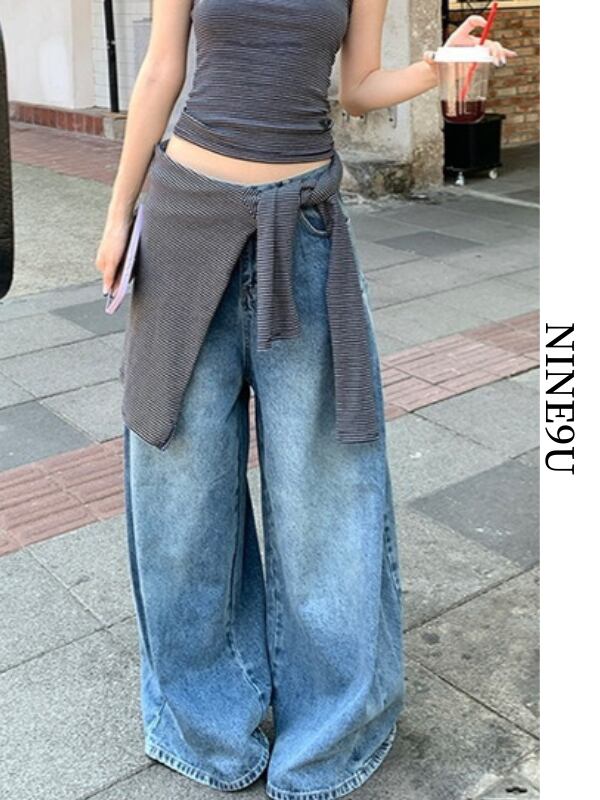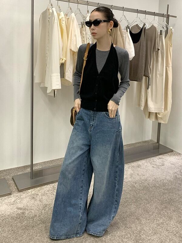 wide-leg denim washed pants【NINE9553】