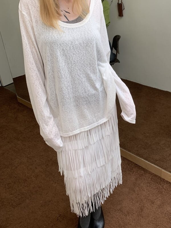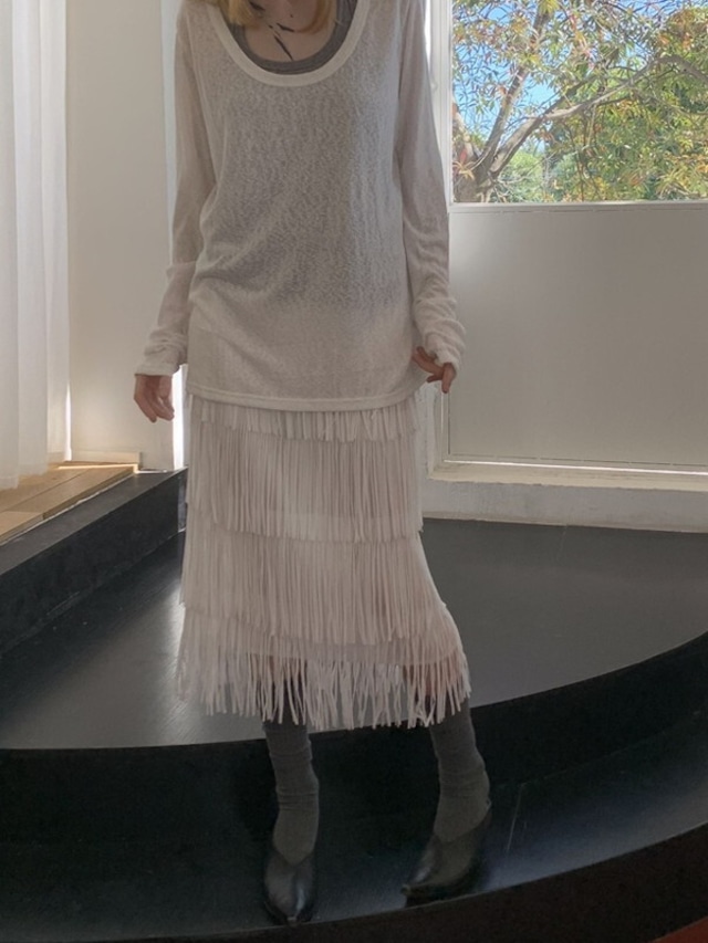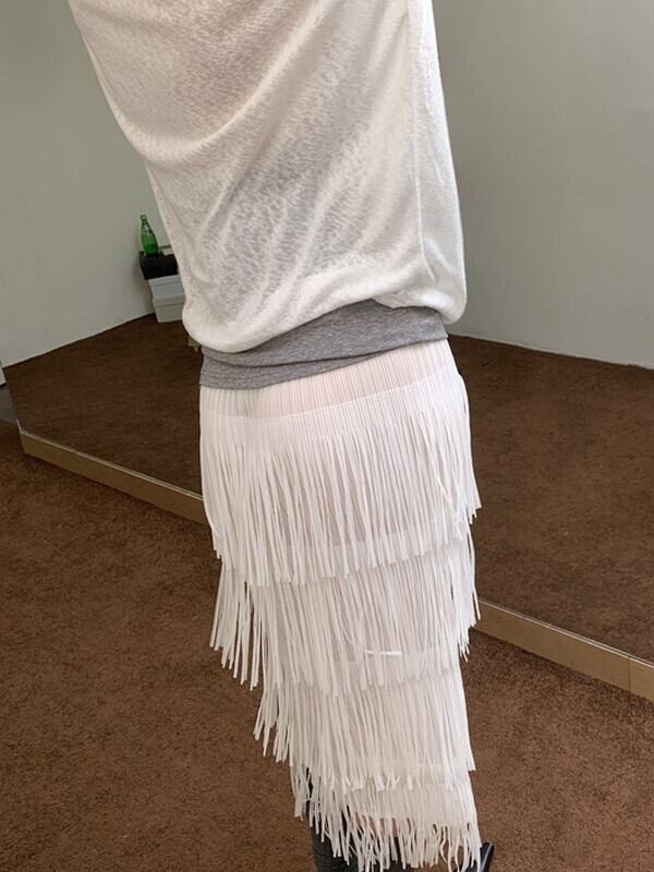 pencil tiered fringe skirt【NINE9560】