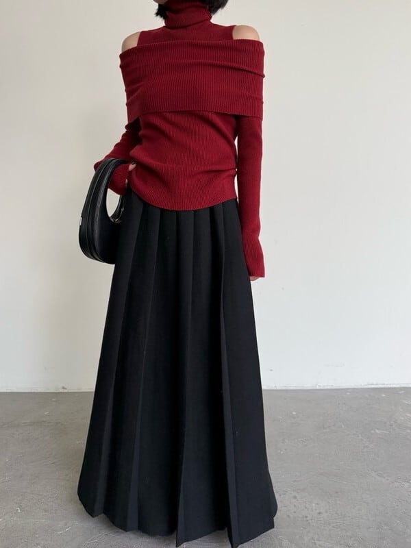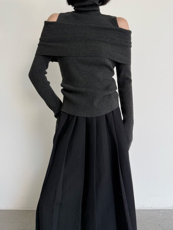 high-neck open-shoulder wrap knit 4color【NINE9563】