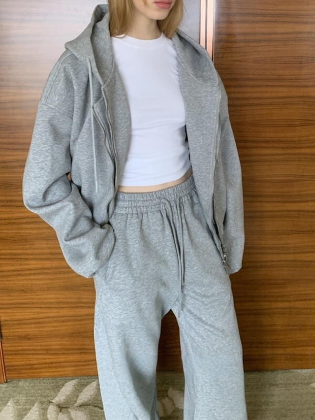 【商品管理番号】 NINE9587 【商品説明】 GRAY/BLACK 【サイズ】 TOPS 【S】length:58cm/chest:132cm/shoulder width:65cm/sleeve Length:57cm 【M】length:60cm/chest:136cm/shoulder width:67cm/sleeve Length:59cm 【L】length:62cm/chest:140cm/shoulder width:69cm/sleeve Length:61cm BOTTOMS 【S】total length:102cm/waist:68cm/hip:106cm 【M】total length:104cm/waist:72cm/hip:110cm 【L】total length:106cm/waist:76cm/hip:114cm 【モデル】 height:164cm body weight:47kg 【素材】 polyester35%/cotton65%