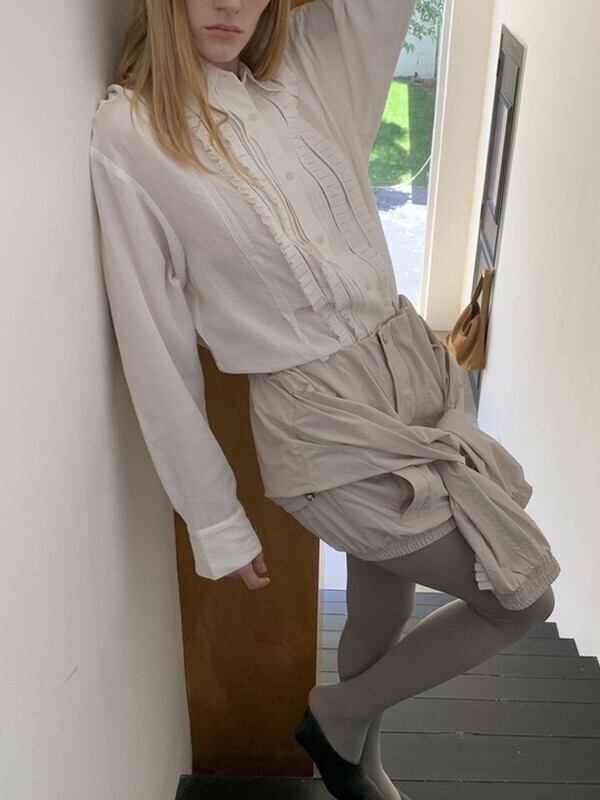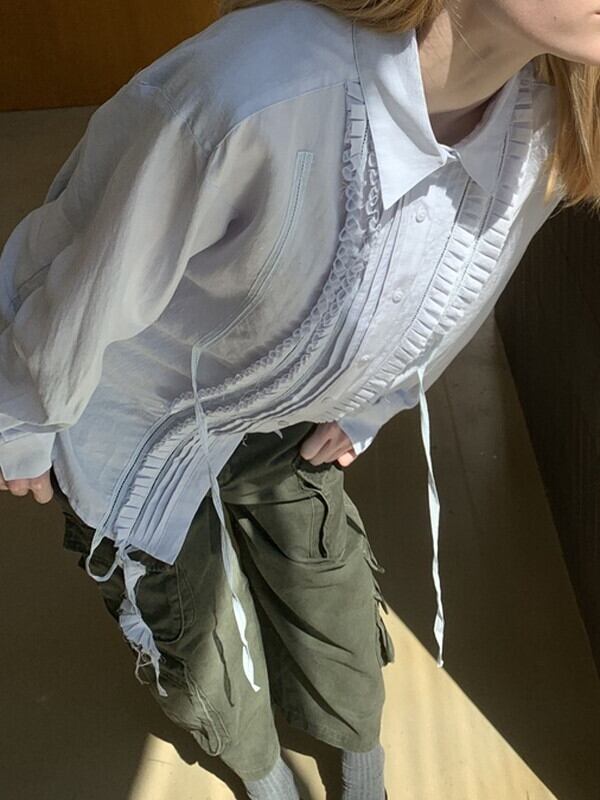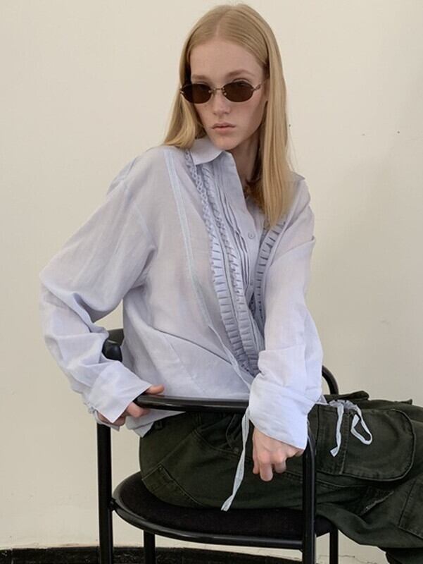 pleats frill classical blouse 2color【NINE9592】