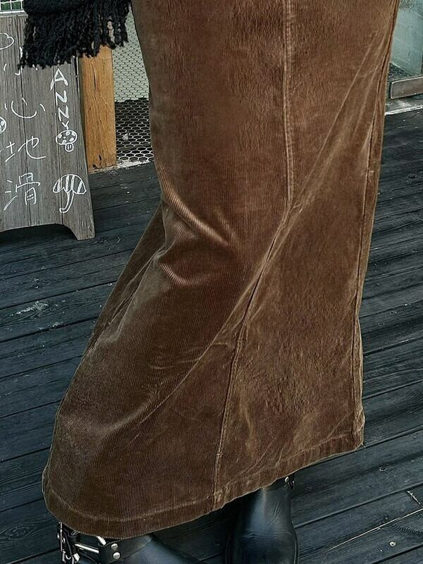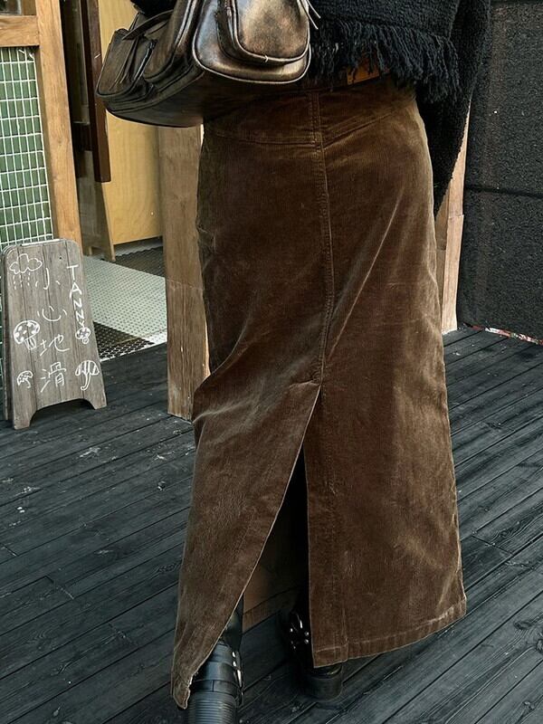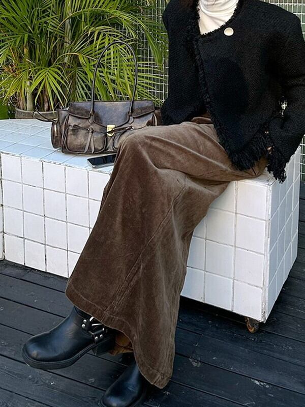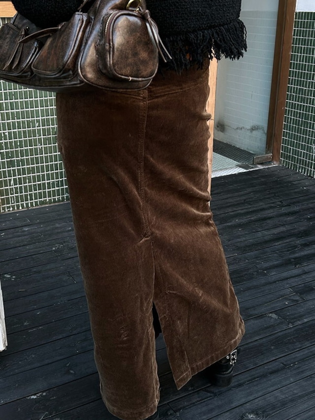 corduroy back-slit long-skirt【NINE9598】