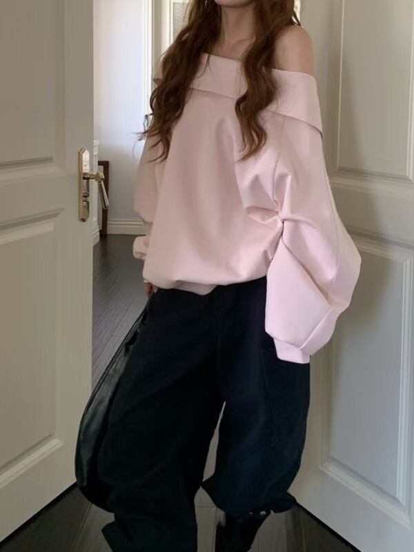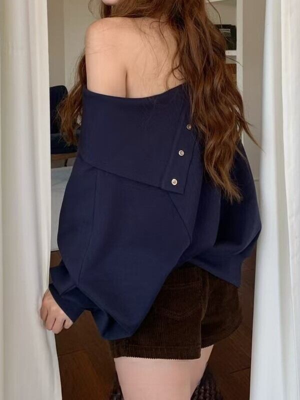 one-shoulder loose wrap pullover 4color【NINE9601】