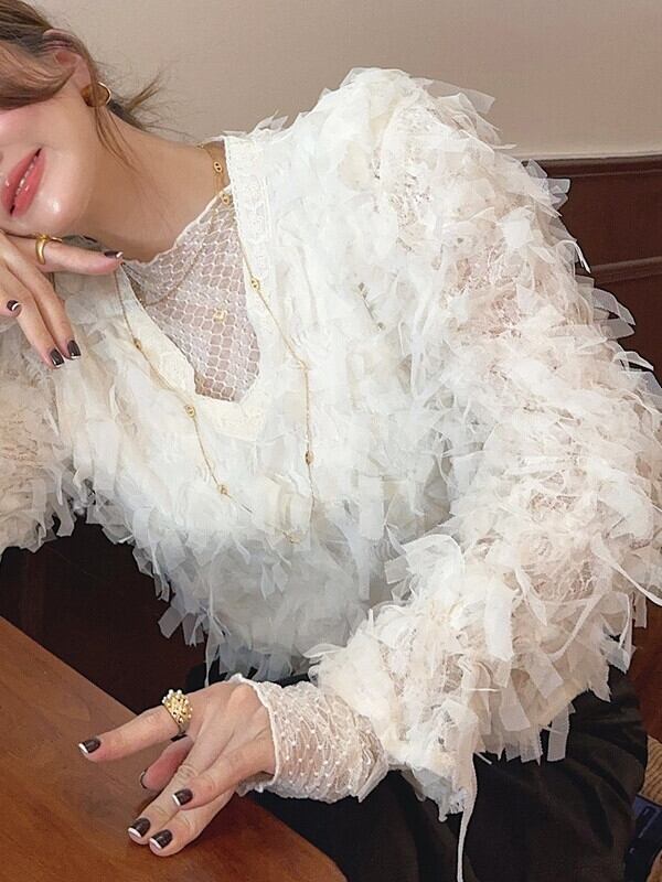 frill ruffle sheer nichi 3d tops 2color【NINE9614】