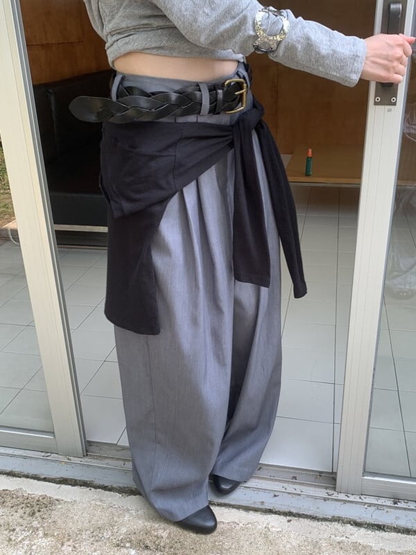 【商品管理番号】 NINE9622 【商品説明】 GRAY/BLACK 【サイズ】 【S】total length:101cm/waist:64cm/hip:92cm 【M】total length:103cm/waist:68cm/hip:96cm 【L】total length:105cm/waist:72cm/hip:100cm 【モデル】 height:164cm wearing size:S body weight:47kg 【素材】 polyester20%/cotton80%