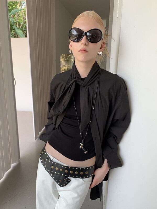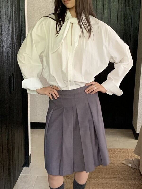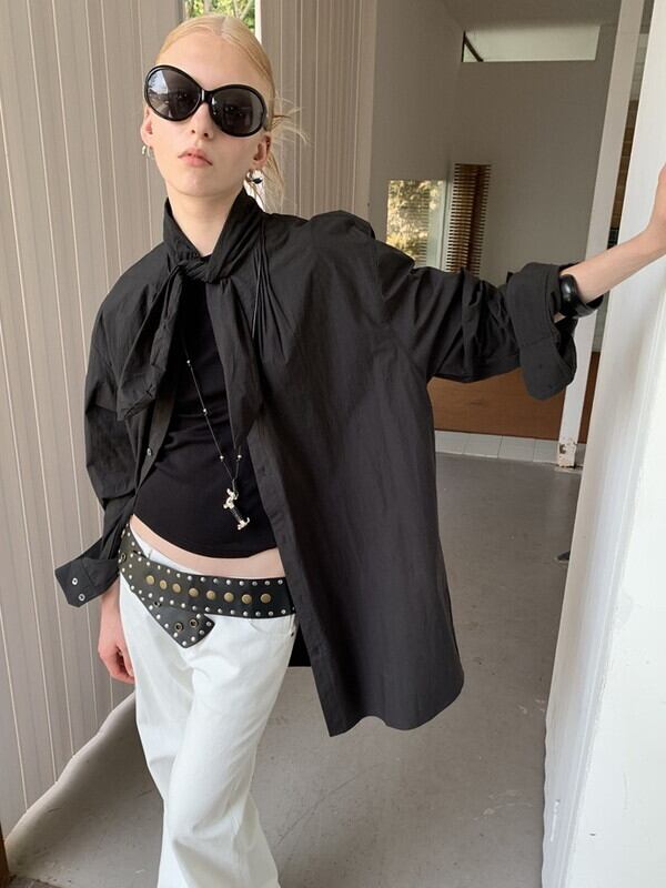 neck-ribbon tie loose shirt 2color【NINE9628】