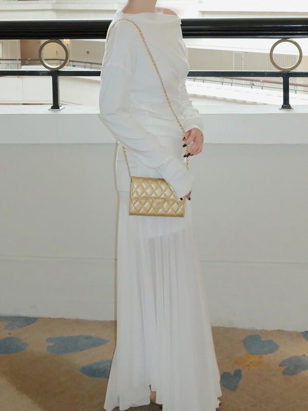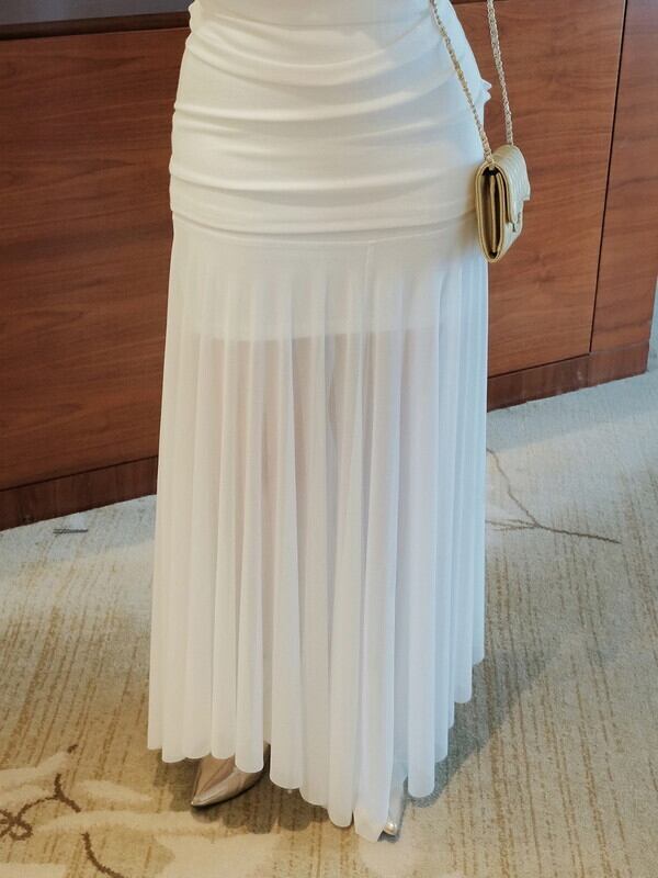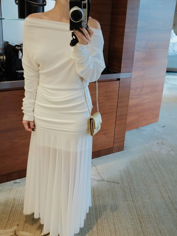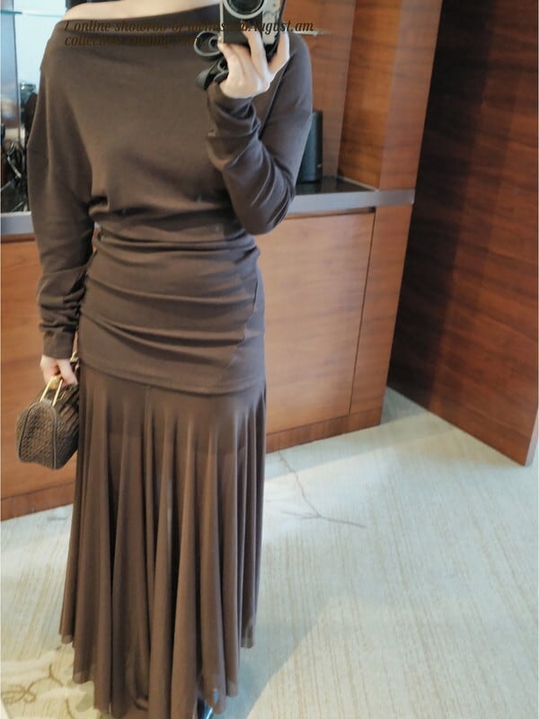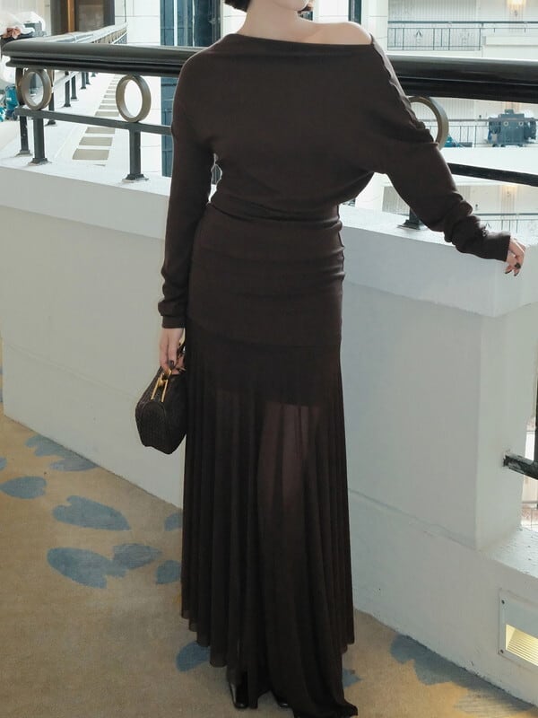cutsew&long-skirt mesh one-shoulder chic 2set 2color【NINE9637】