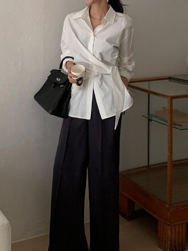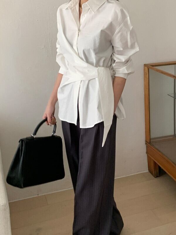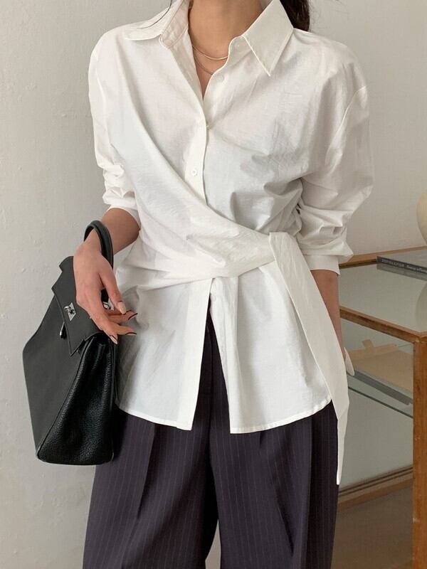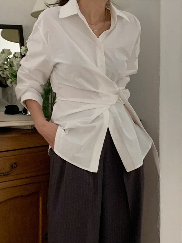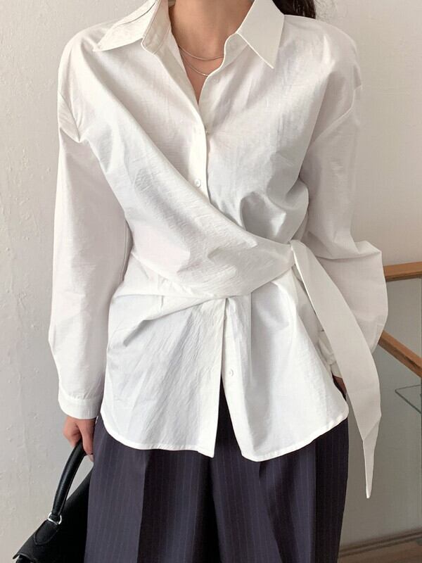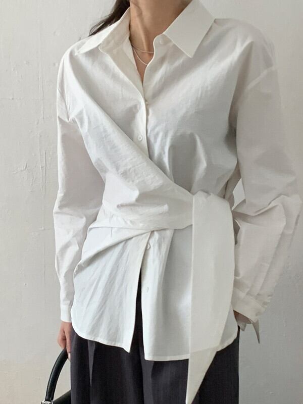 twist waist-mark unique side-cross shirt【NINE9643】