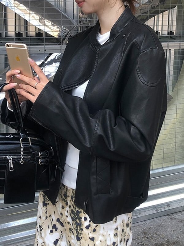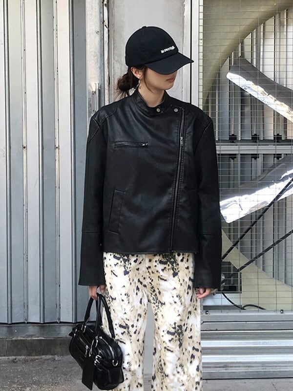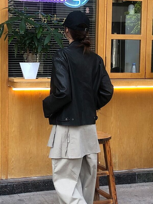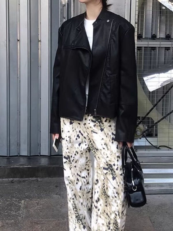 riders leather band-collar jakcet【NINE9635】