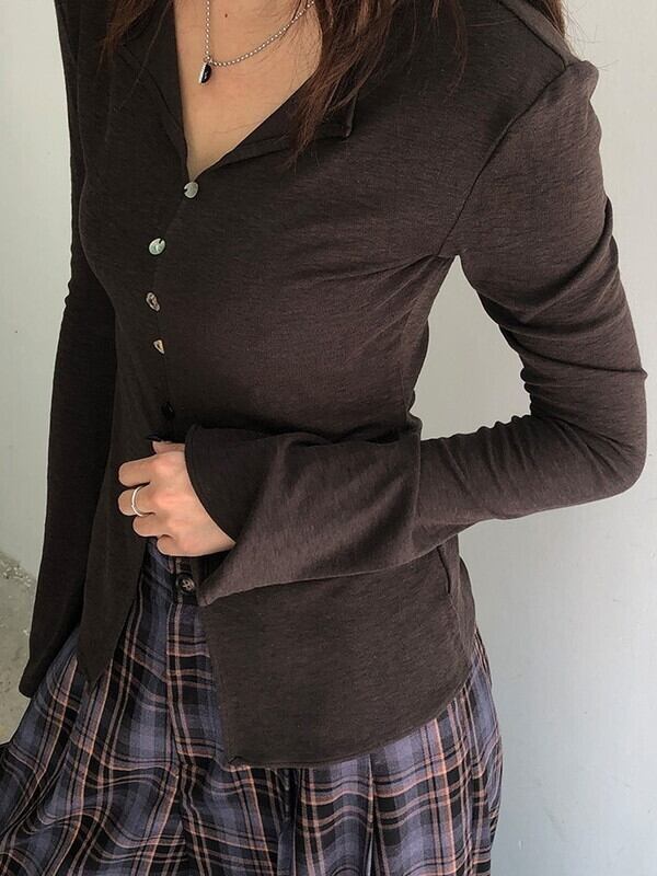 thin v-neck slit tops【NINE9656】