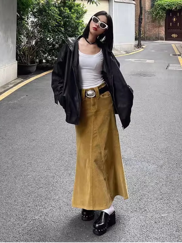 【商品管理番号】 NINE9663 【商品説明】 YELLOW/BROWN/BLACK 【サイズ】 【S】length:89cm/waist:67cm/hip:86cm 【M】length:90cm/waist:71cm/hip:90cm 【L】length:91cm/waist:75cm/hip:94cm 【XL】length:91cm/waist:79cm/hip:98cm 【モデル】 height:162cm body weight:47kg 【素材】 cototn95%/polyurethane5%