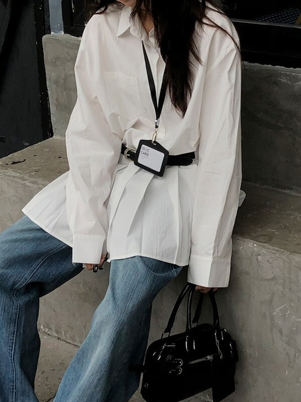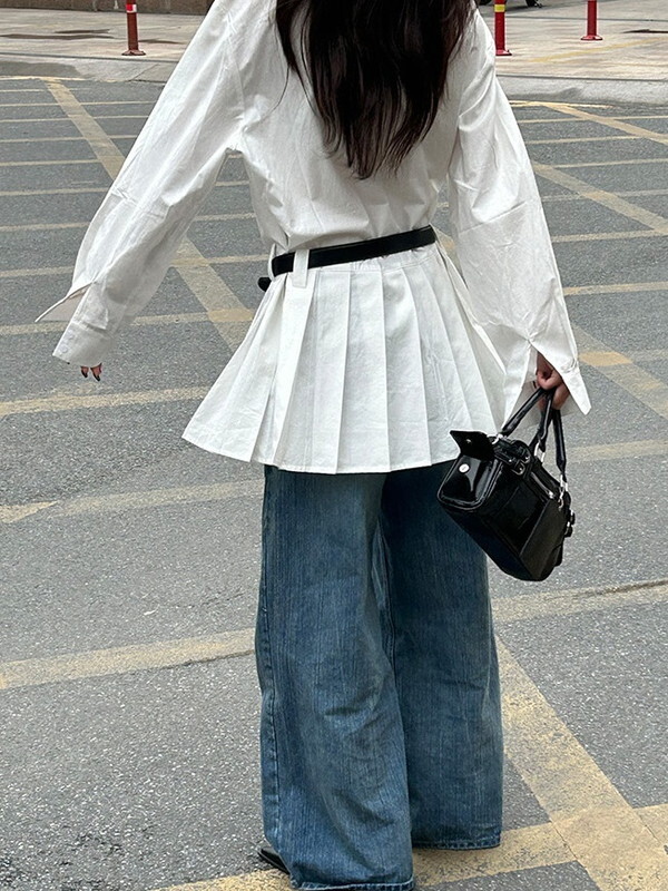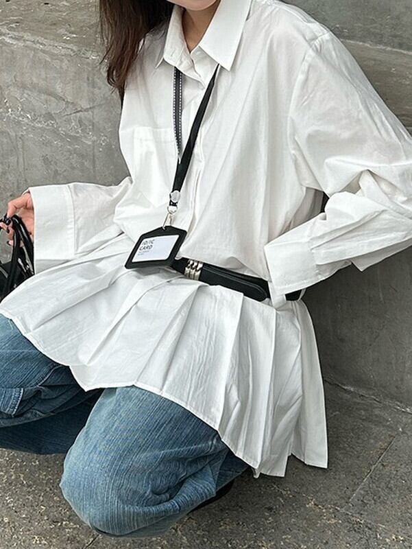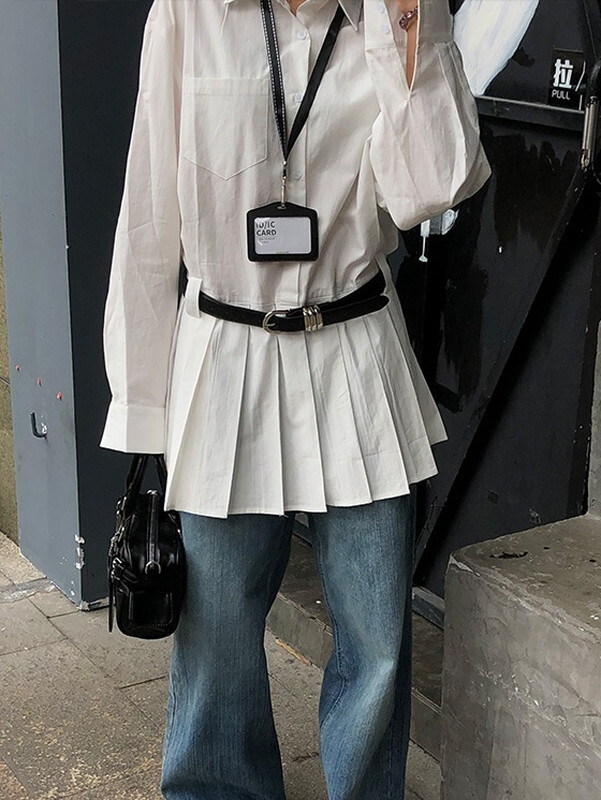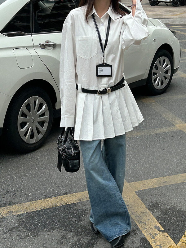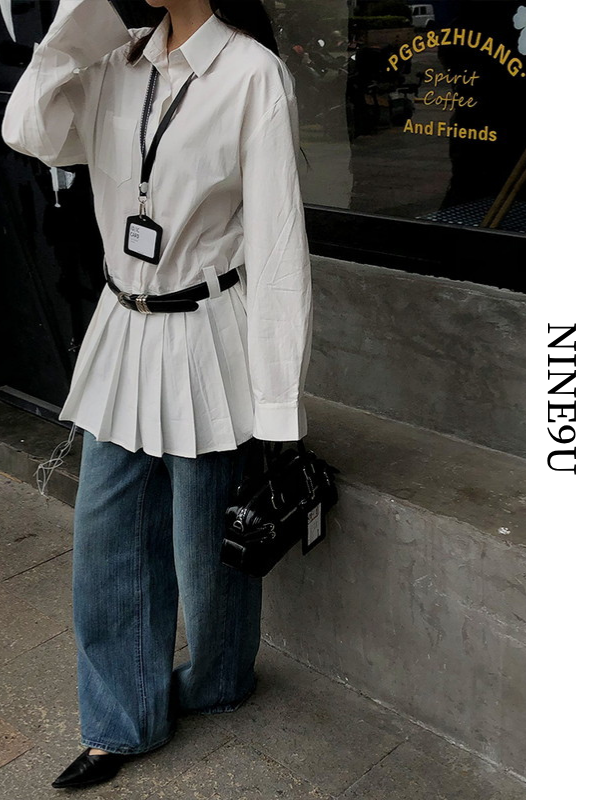 hem-pleats flare shirt one-piece【NINE9667】