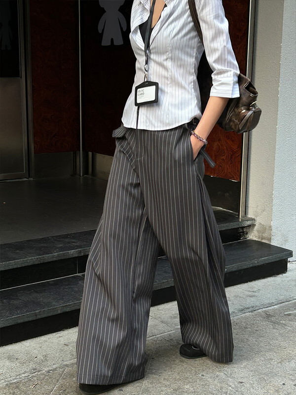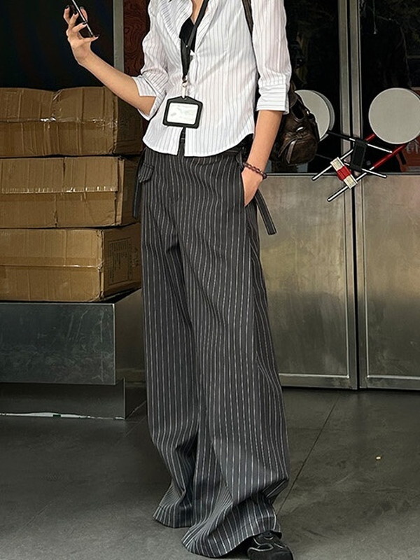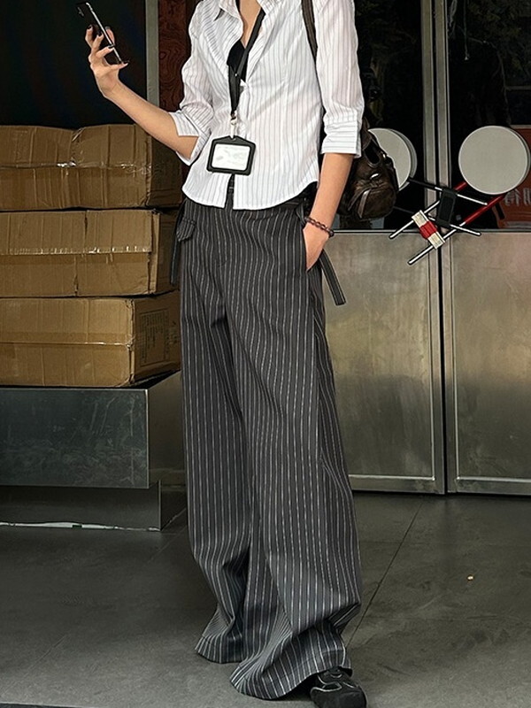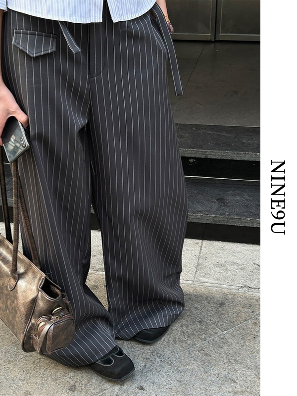 stripe high-waist wide-pants【NINE9670】