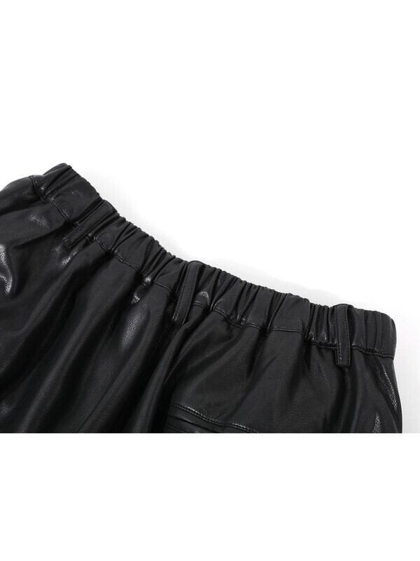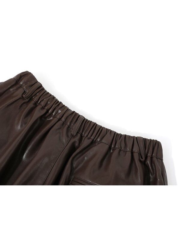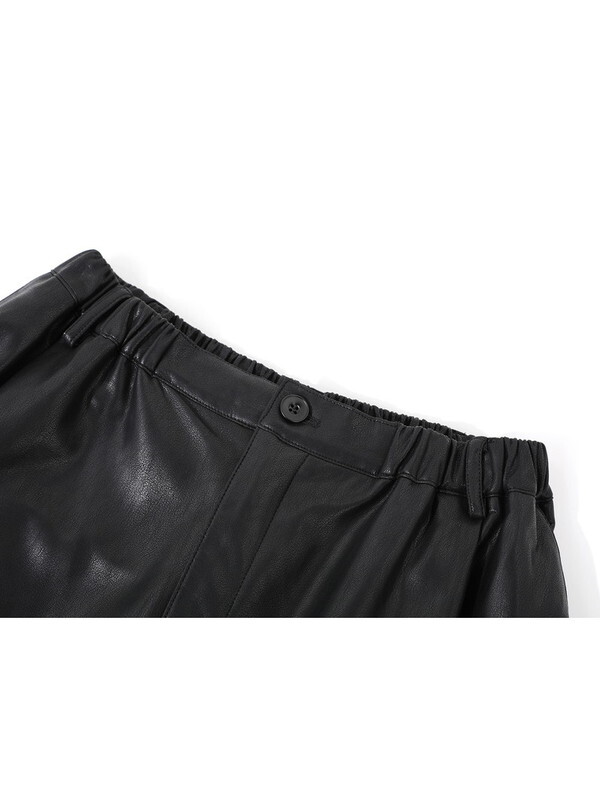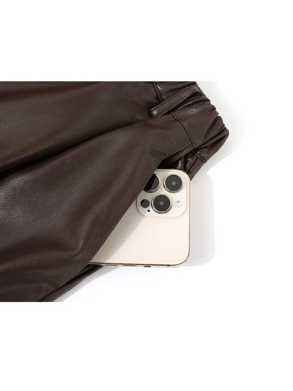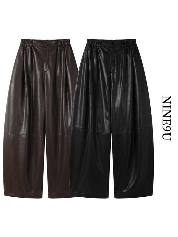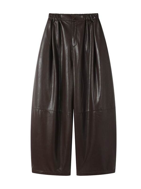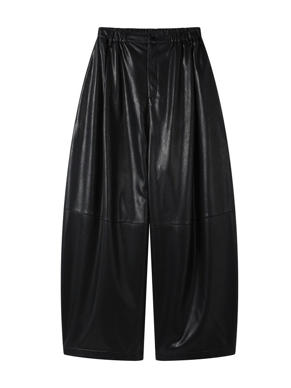 leather welastic-waistband barrel-pants 2color【NINE9674】