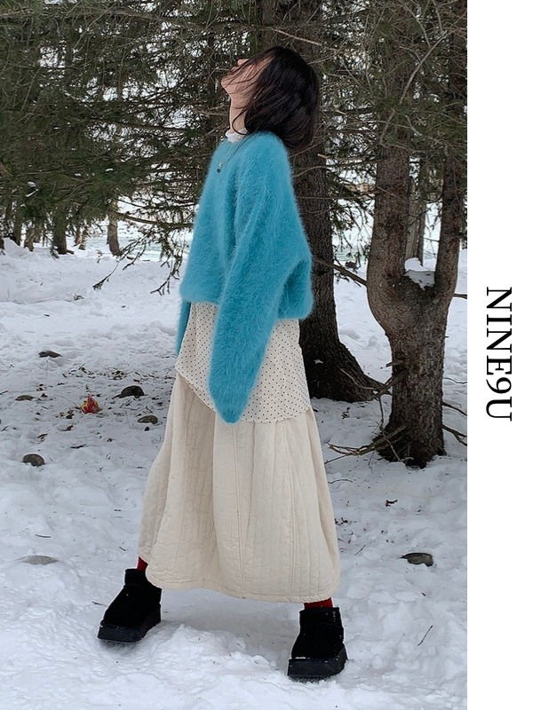ovresize round-neck mohair-knit 2color【NINE9685】