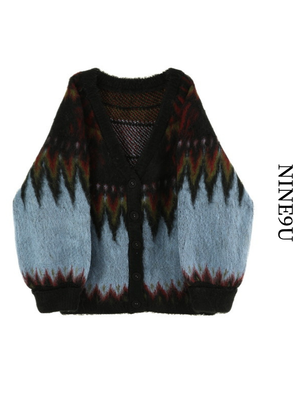 mohair-knit retro volume-sleeve cardigan【NINE9691】