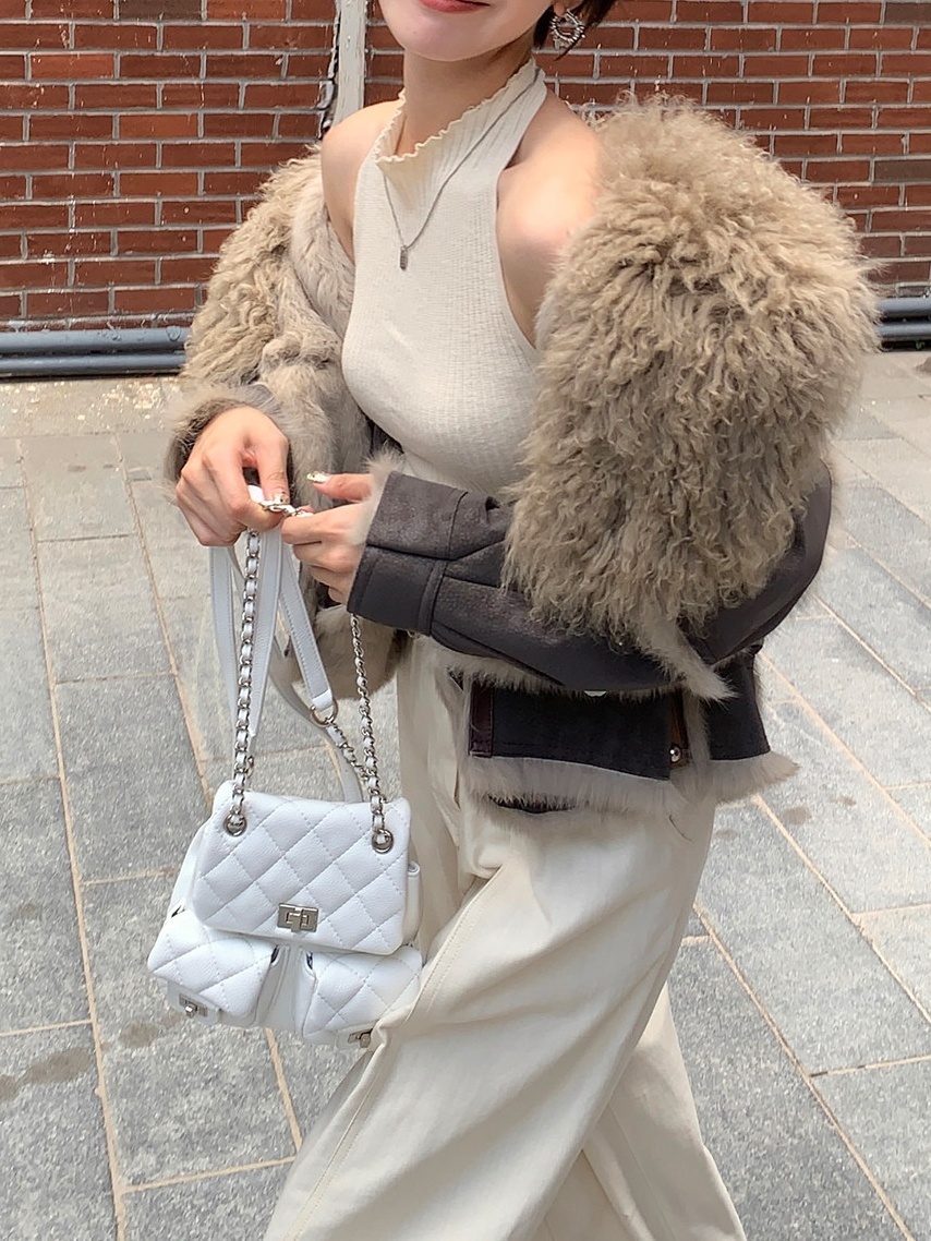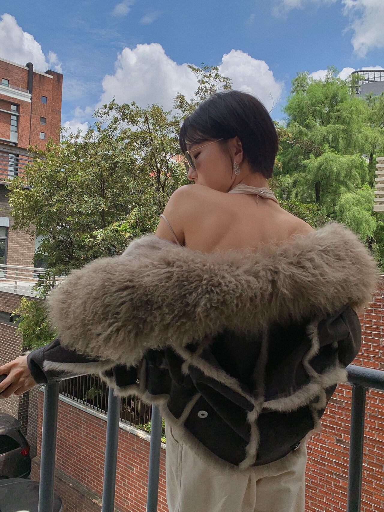 【商品管理番号】 NINE9696 【商品説明】 PURPLE/BROWN 【サイズ】 【S】length:58cm/chest:110cm/shoulder width:49cm/sleeve Length:46cm 【M】length:59cm/chest:114cm/shoulder width:50cm/sleeve Length:47cm 【L】length:60cm/chest:118cm/shoulder width:51cm/sleeve Length:48cm 【XL】length:61cm/chest:122cm/shoulder width:52cm/sleeve Length:49cm 【モデル】 height:162cm wearing size:M body weight:44kg 【素材】 sheep skin/rabbit skin