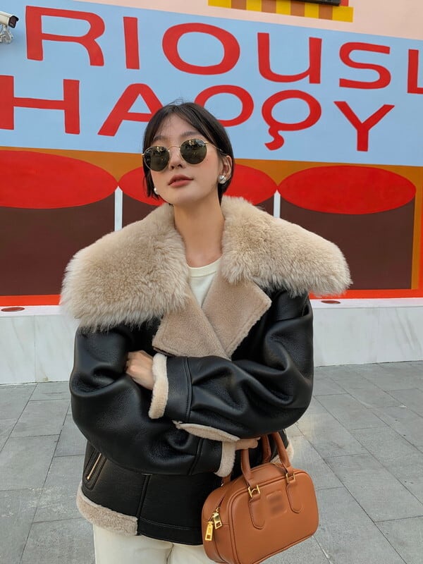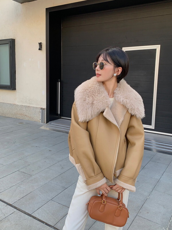 【商品管理番号】 NINE9709 【商品説明】 LIGHT BROWN/DARK BROWN/BLACK/BEIGE 【サイズ】 【S】length:51cm/chest:118cm/shoulder width:53cm/sleeve Length:51cm 【M】length:52cm/chest:122cm/shoulder width:54cm/sleeve Length:52cm 【L】length:53cm/chest:126cm/shoulder width:55cm/sleeve Length:53cm 【モデル】 height:162cm wearing size:M body weight:44kg 【素材】 sheep skin