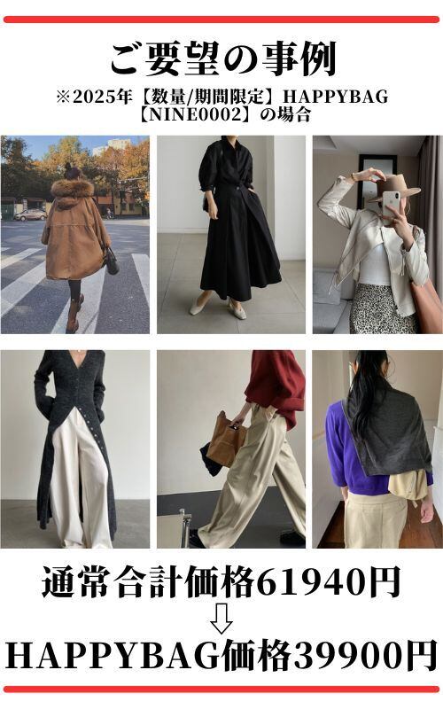 ▼2025年【数量/期間限定】HAPPYBAG【NINE0001】はコートは入りません。