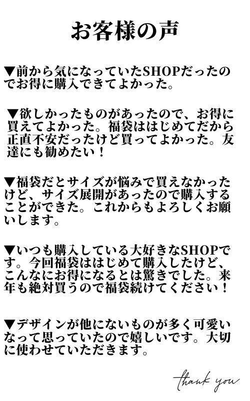 備考欄にお好きなファッションを記載いただき、お客様に合わせたアイテムをセレクトさせていただきます。(詳細は商品画像をご覧くださいませ)
