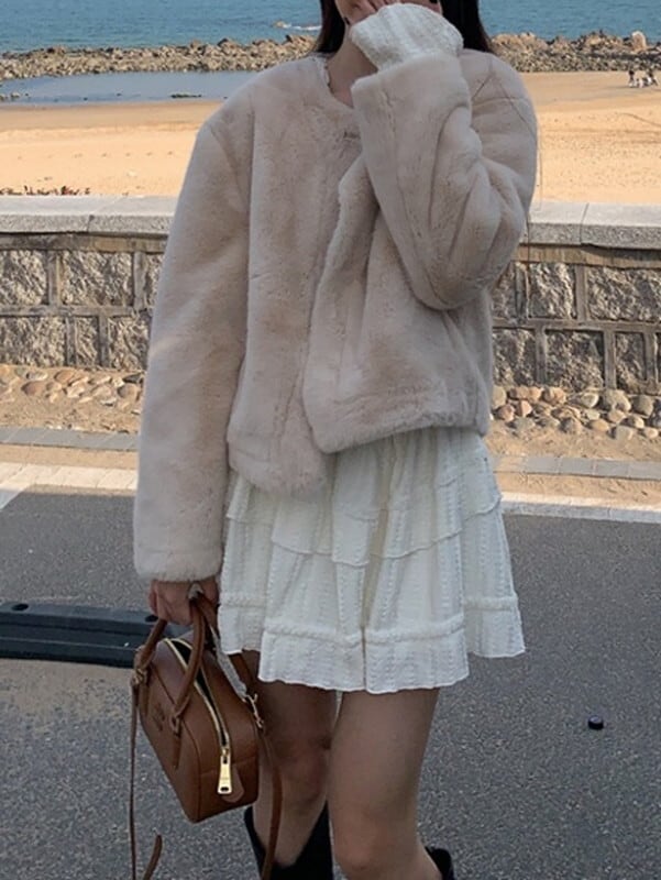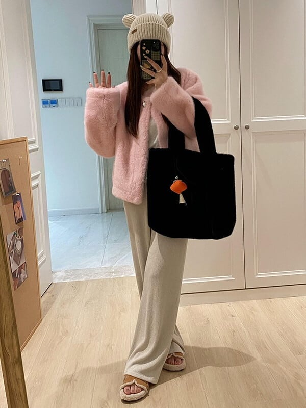 【商品管理番号】 NINE9728 【商品説明】 WHITE/BLACK/BEIGE/PINK/BROWN 【サイズ】 【S】length:52cm/chest:106cm/sleeve Length:56cm 【M】length:53cm/chest:110cm/sleeve Length:57cm 【L】length:54cm/chest:114cm/sleeve Length:58cm 【素材】 polyester100%