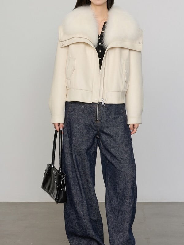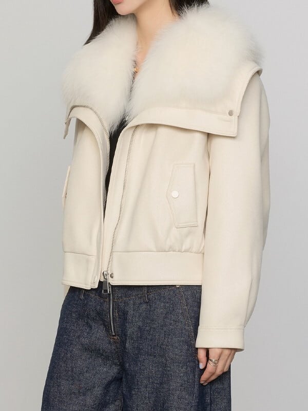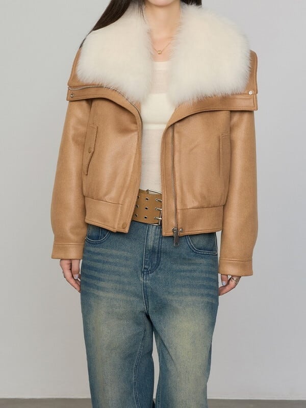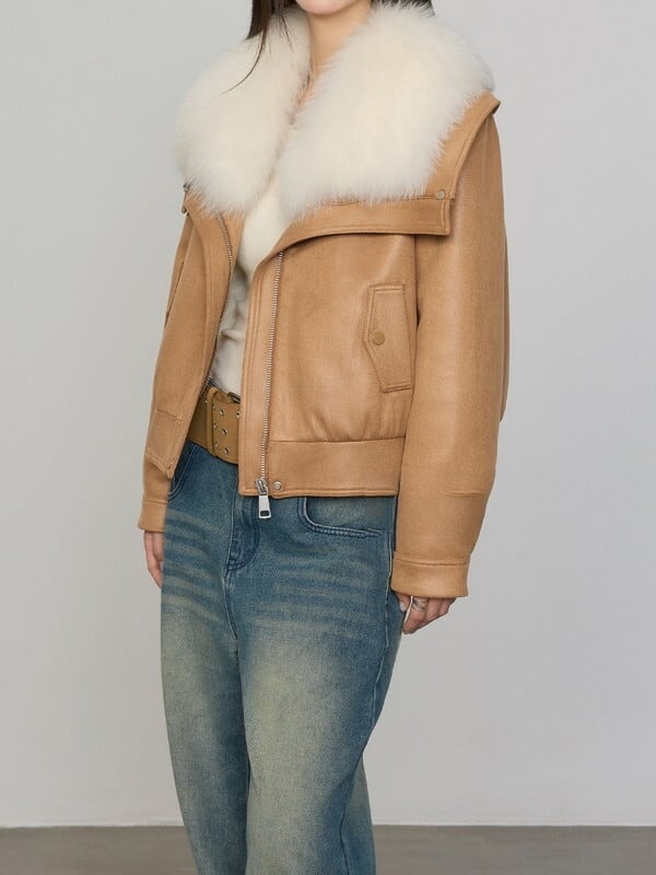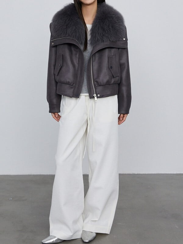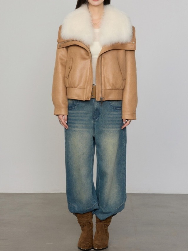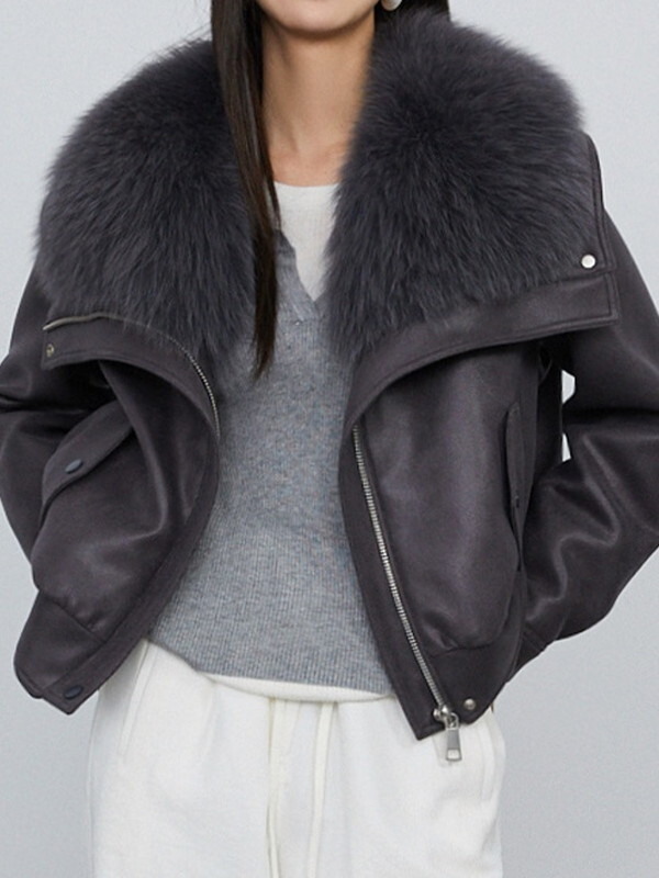 【商品管理番号】 NINE9730 【商品説明】 GRAY/BROWN/WHITE/BEIGE 【サイズ】 【S】length:57cm/chest:114cm/shoulder width:45cm/sleeve Length:59cm 【M】length:58cm/chest:118cm/shoulder width:46cm/sleeve Length:60cm 【素材】 fox fur/suede/down