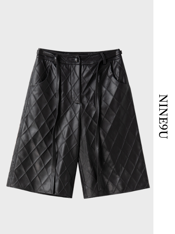 quilted leather short-pants【NINE9753】