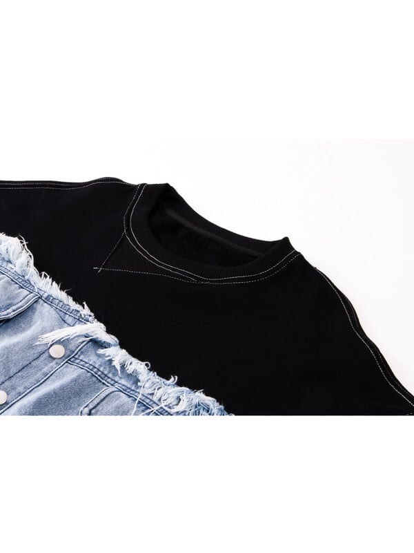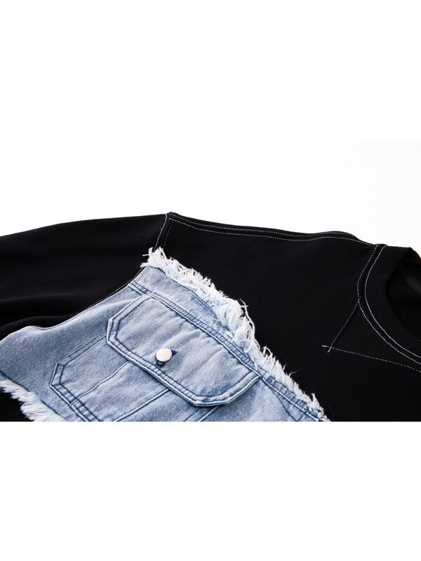 unique denim patchwork pullover【NINE9770】