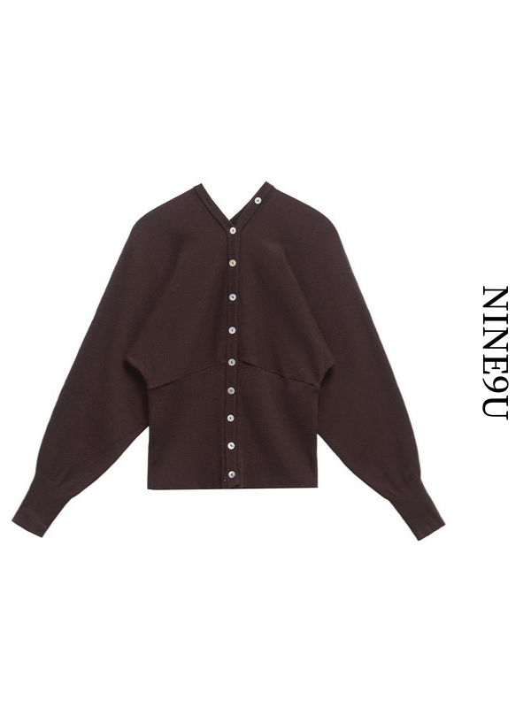 balloon-sleeve v-neck knit cardigan【NINE9799】