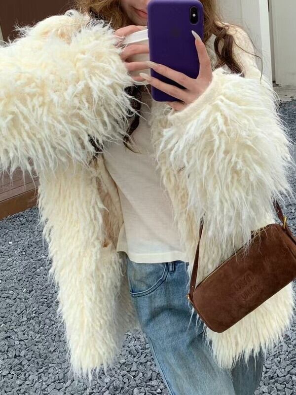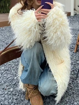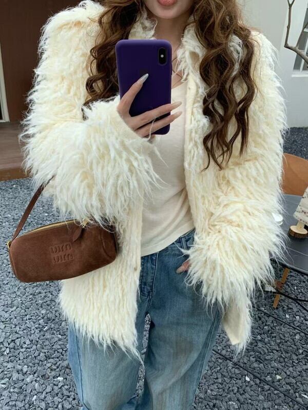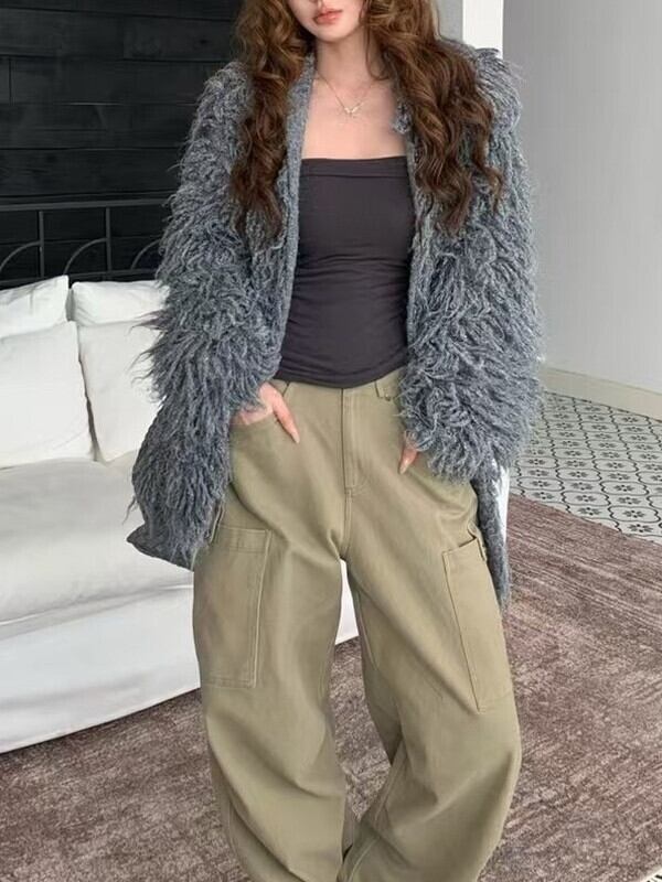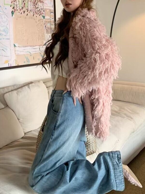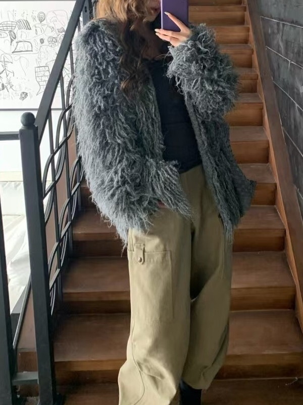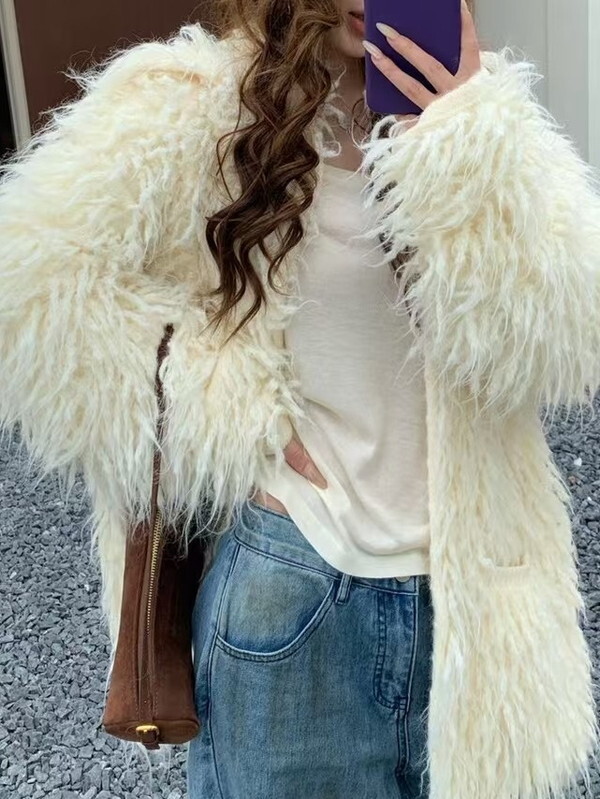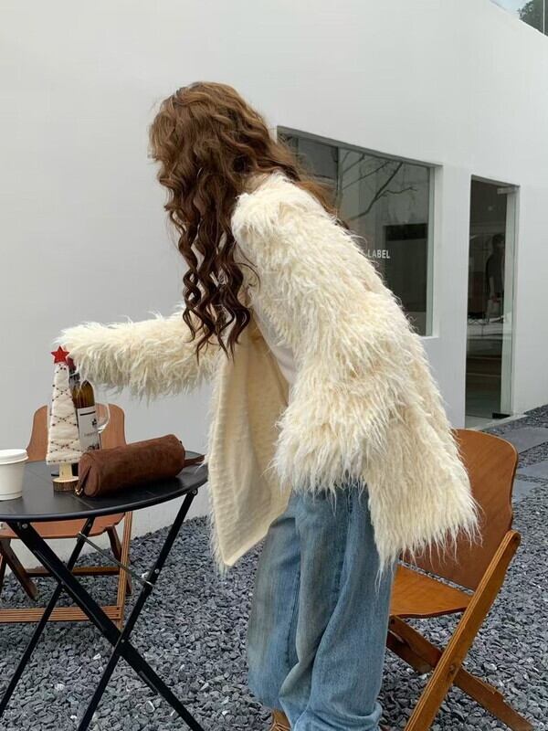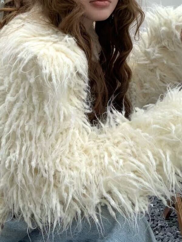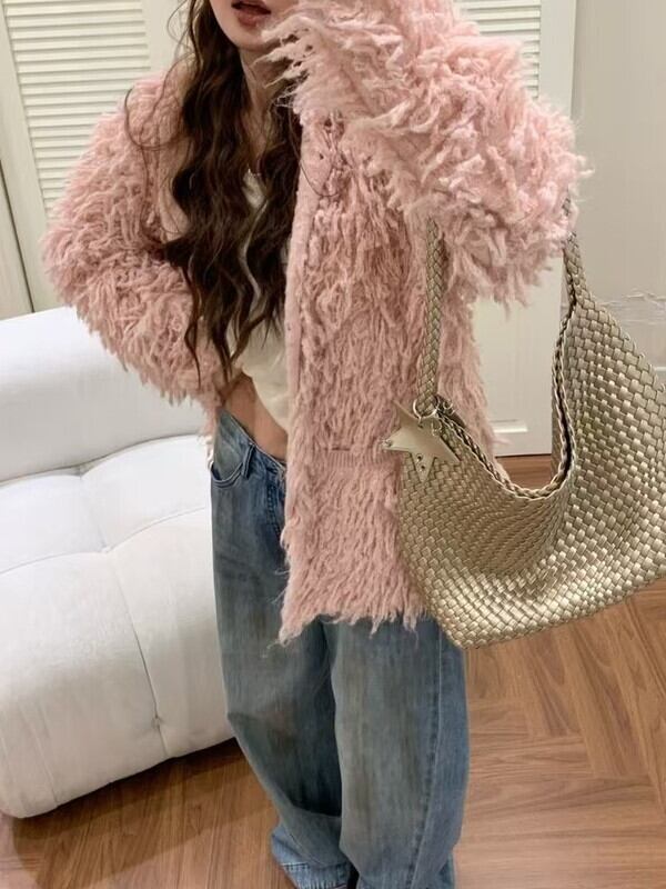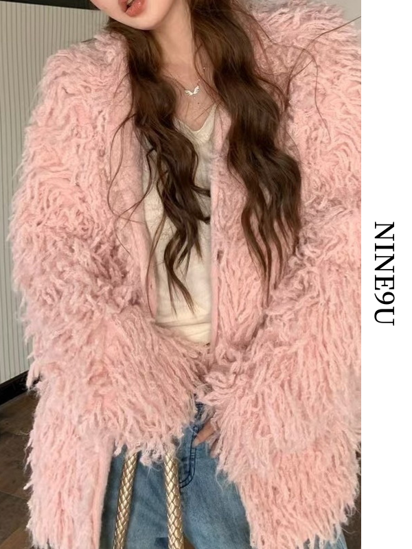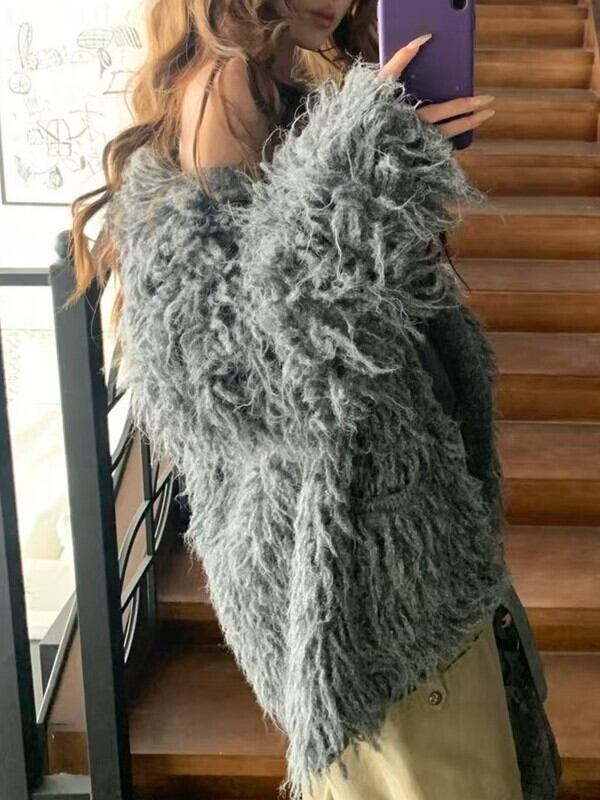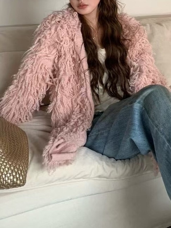 fringe ovresize no-collar knit jacket 3color【NINE9806】