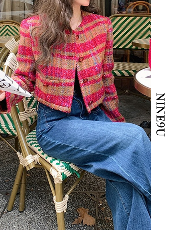 colorful no-collar short jacket【NINE9816】