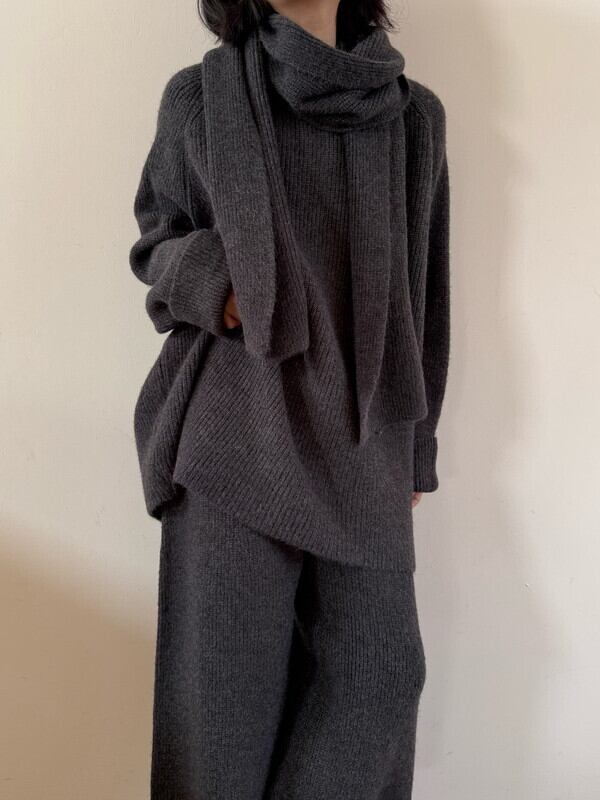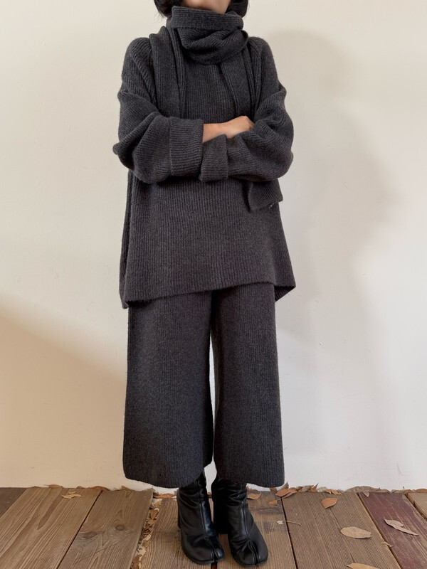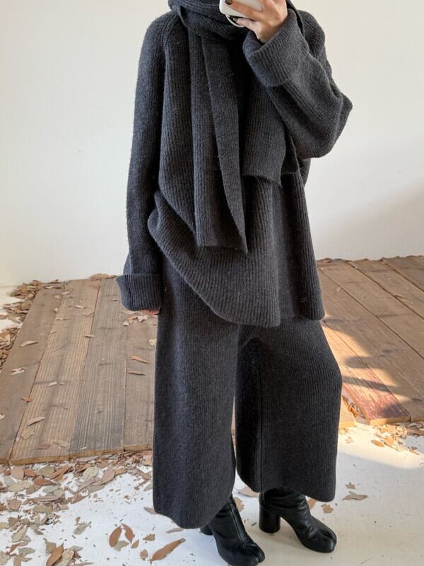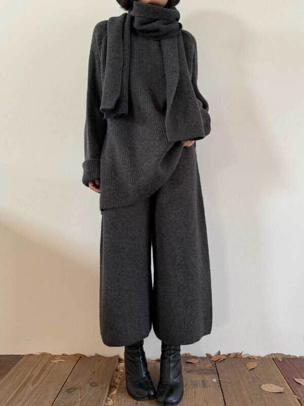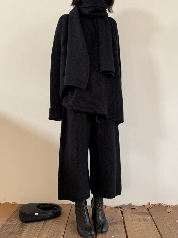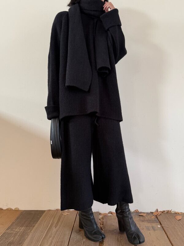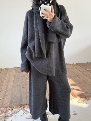 tops&pants&muffler knit chic 3set 2color【NINE9838】
