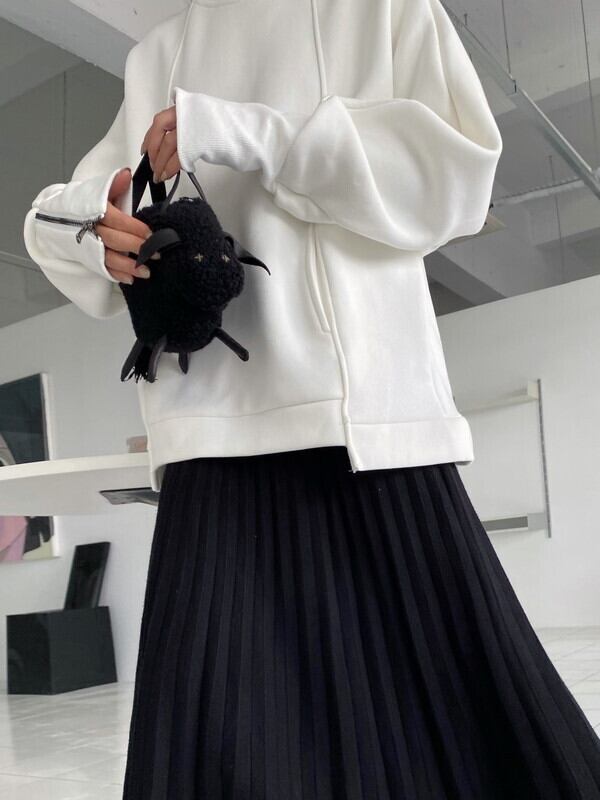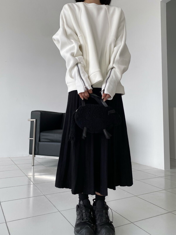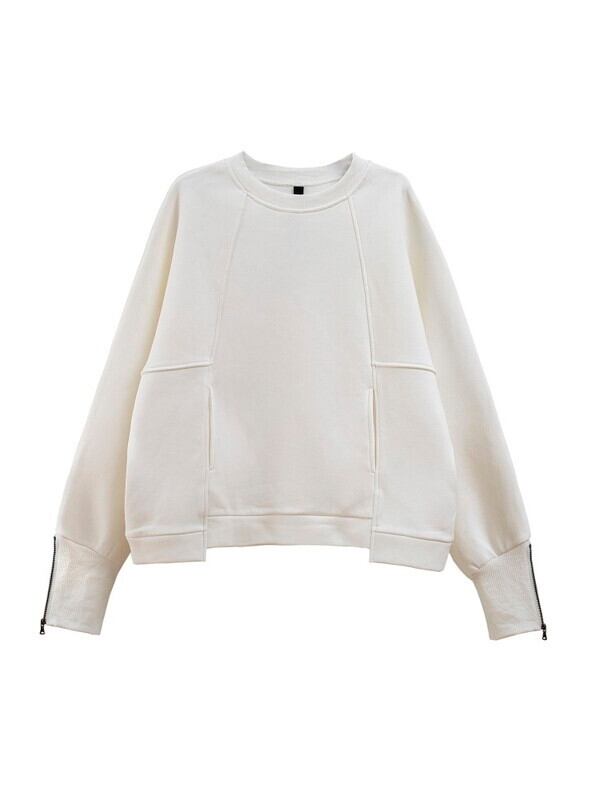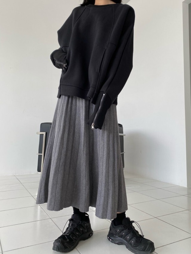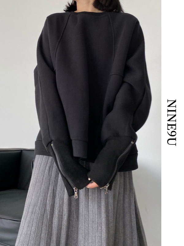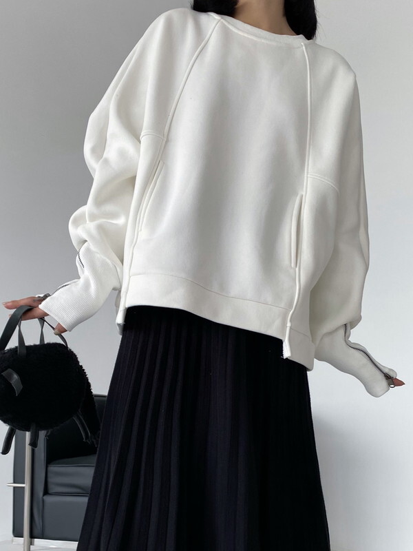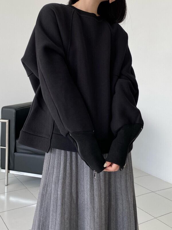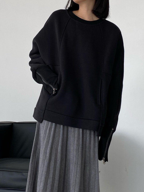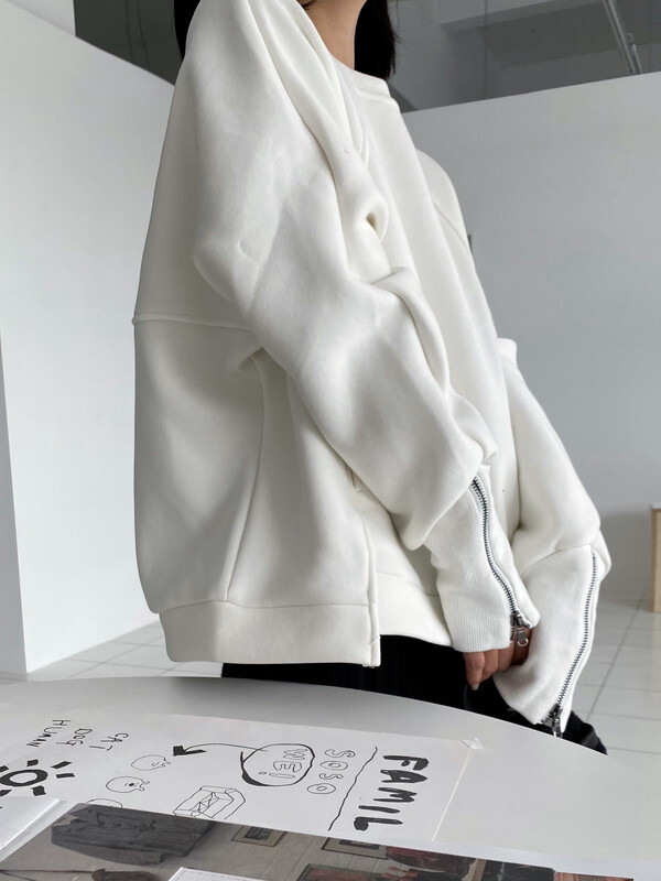 sweat sleeve-zip patchwork loose pullover 2color【NINE9845】