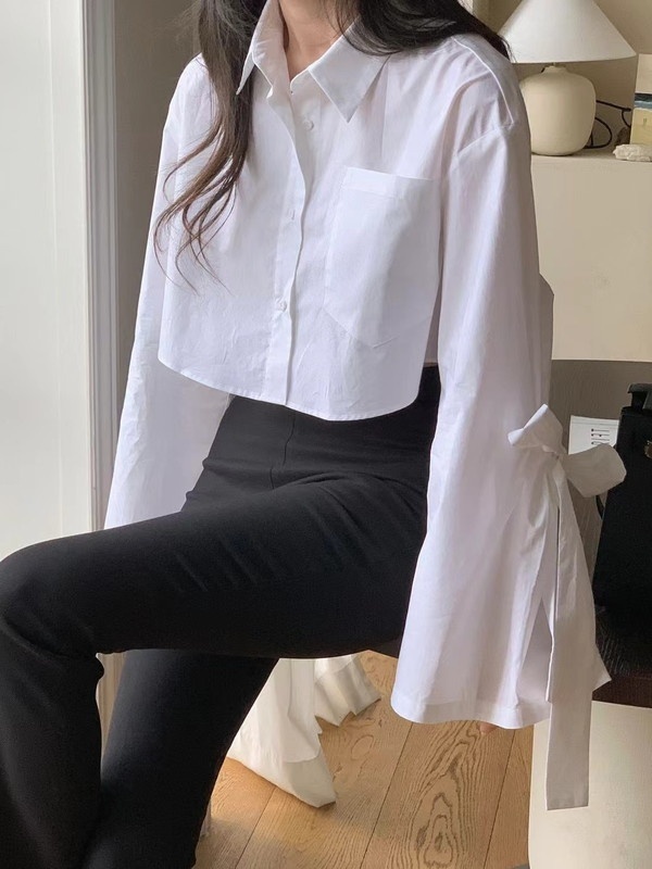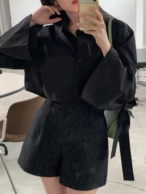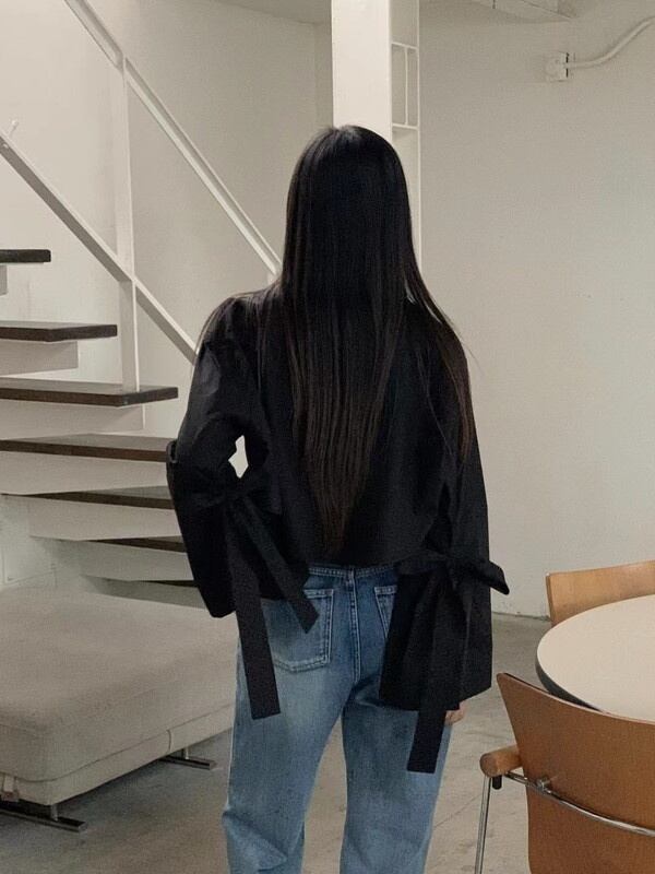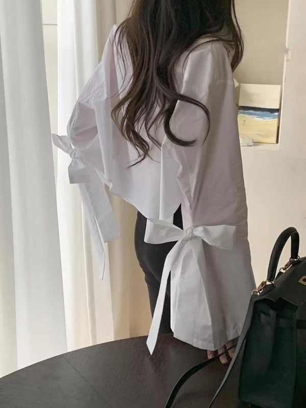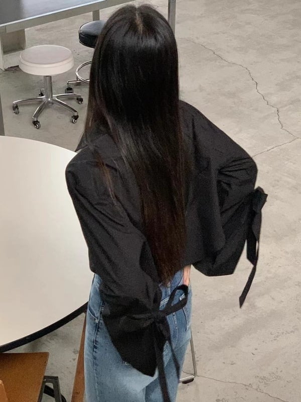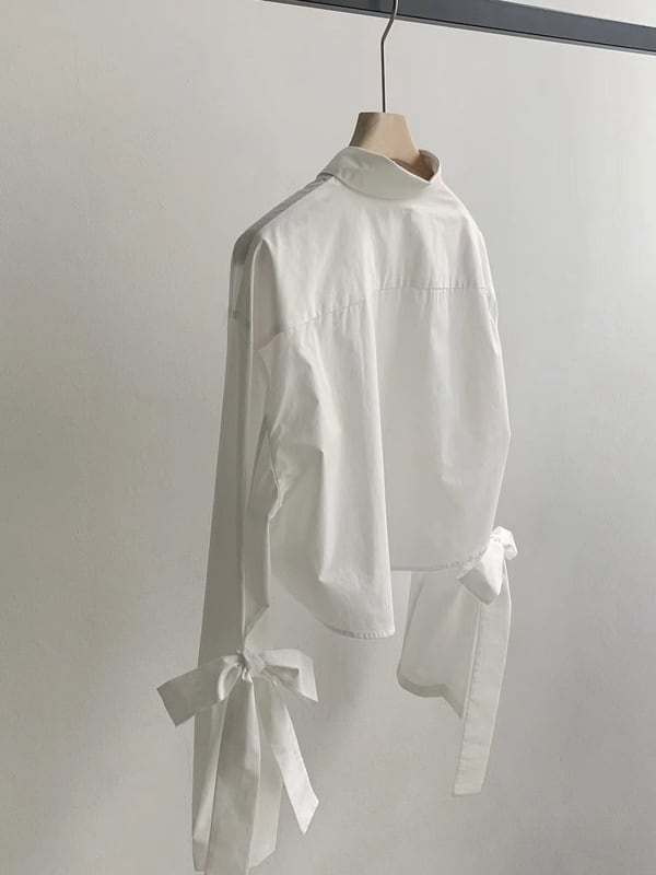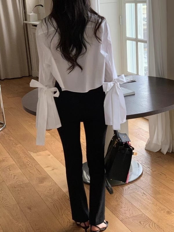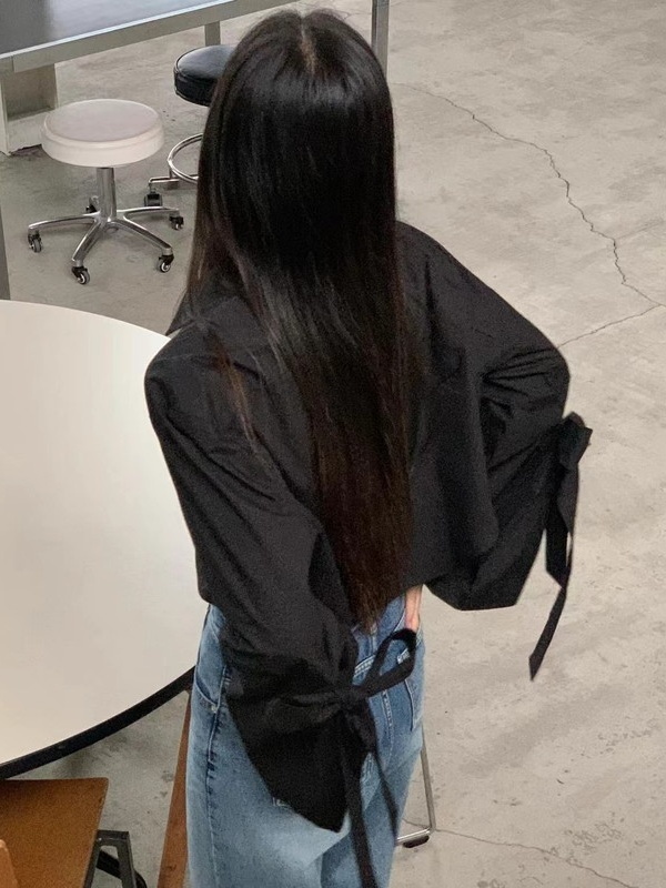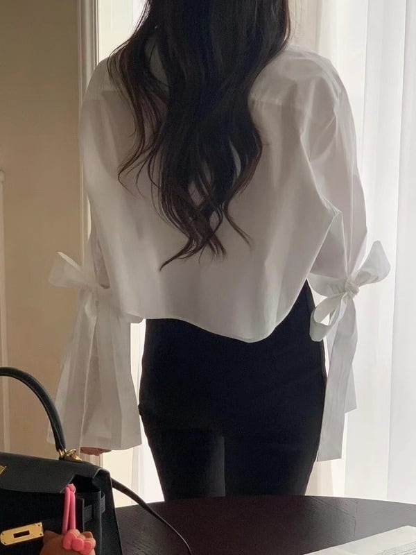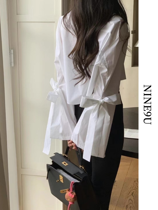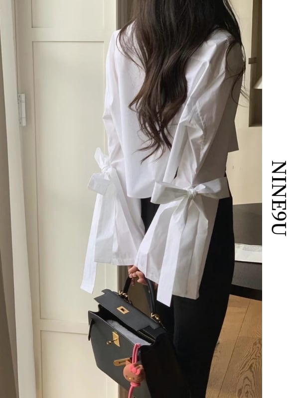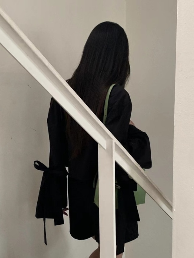 flare-sleeve ribbon big-ribbon blouse 2color【NINE9829】