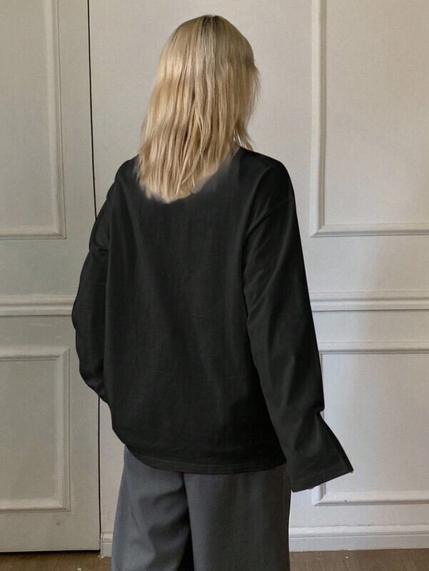 【商品管理番号】 NINE-S0005 【商品説明】 BLACK/WHITE/RED 【サイズ】 【S】length:68.5cm/chest:108cm/shoulder width:49cm/sleeve Length:53.3cm 【M】length:70cm/chest:114cm/shoulder width:52cm/sleeve Length:54cm 【L】length:71.5cm/chest:120cm/shoulder width:55cm/sleeve Length:54.7cm 【モデル】 height:164cm wearing size:M 【素材】 cototn95%/polyurethane5%