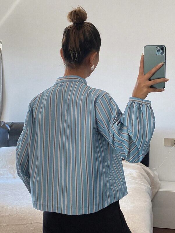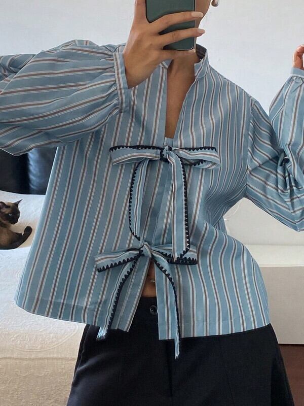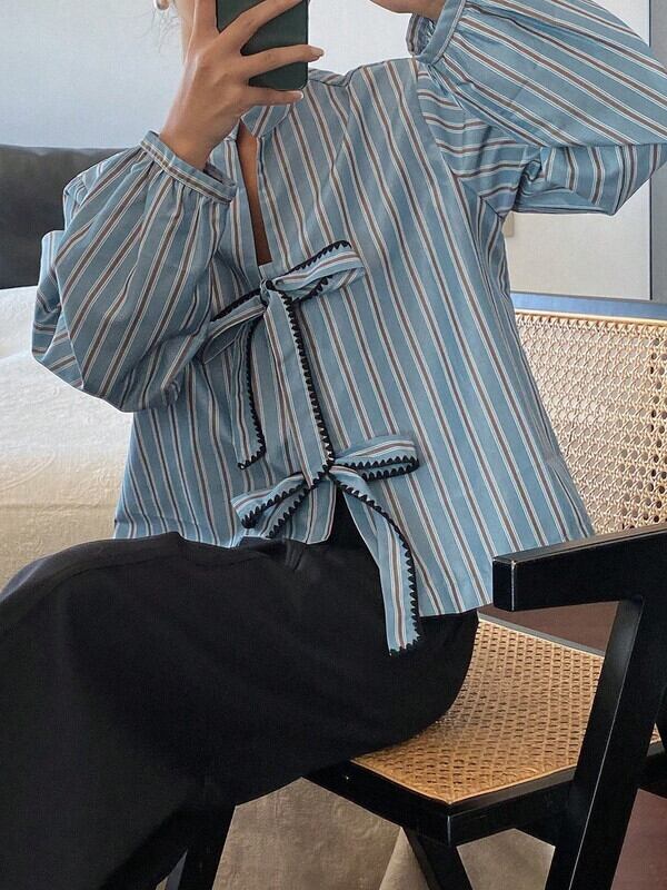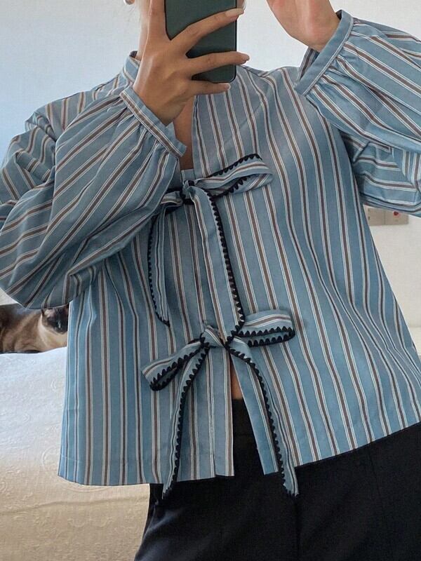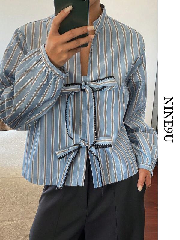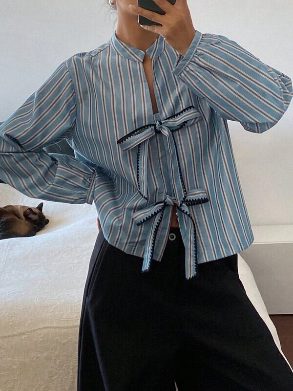 stripe ribbon loose shirt【NINE-S0007】