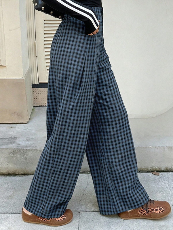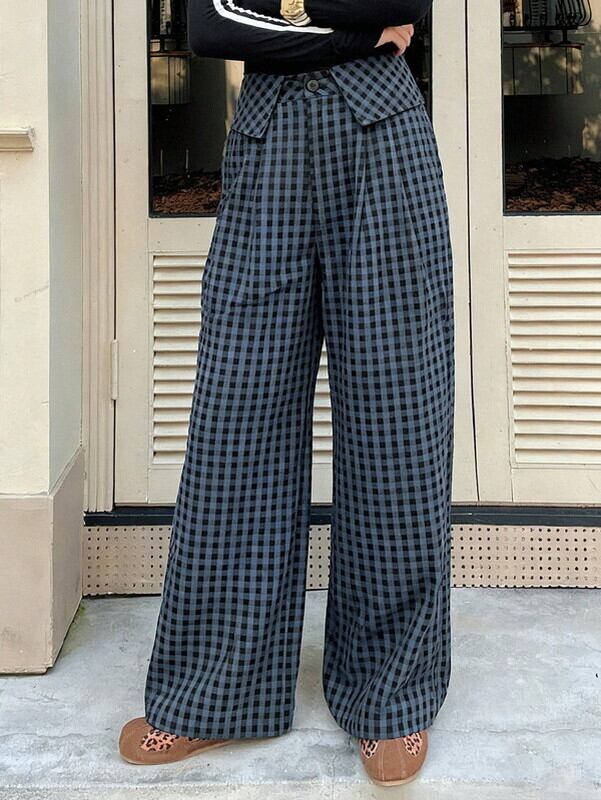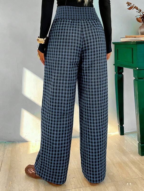 plaid high-waist wrap-waist pants【NINE-S0008】