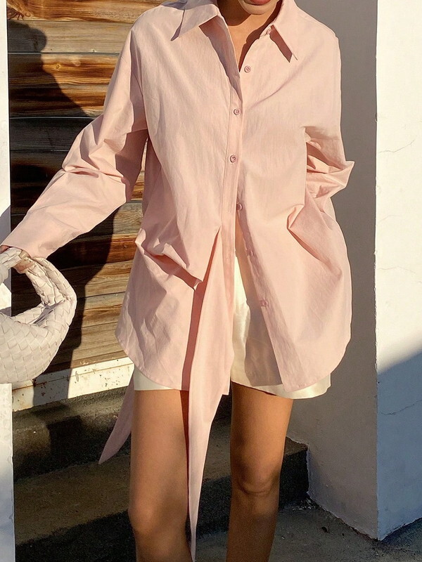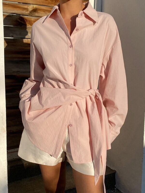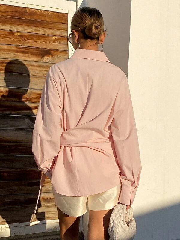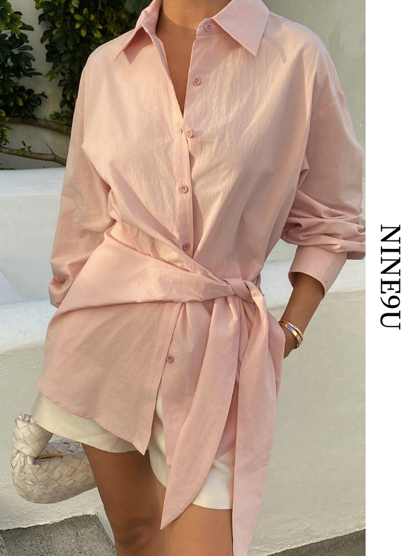 waist-twist oversize ribbon shirt【NINE-S0011】