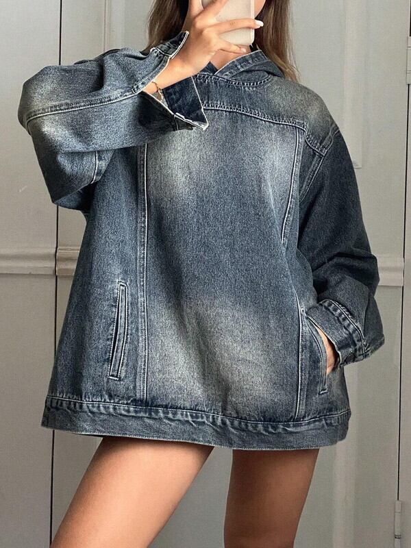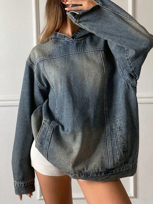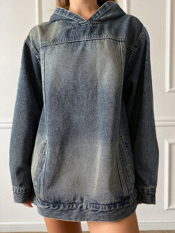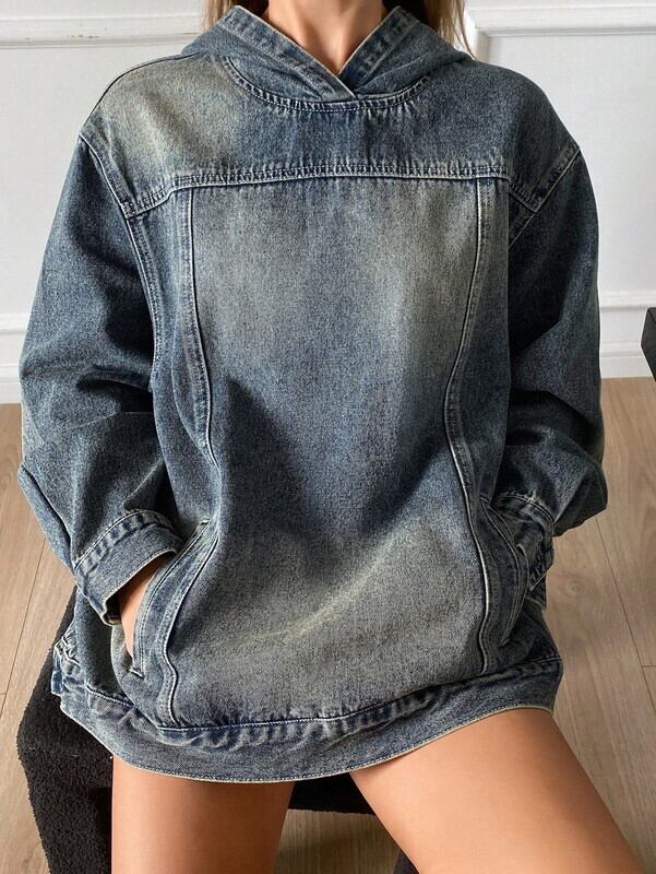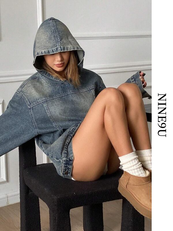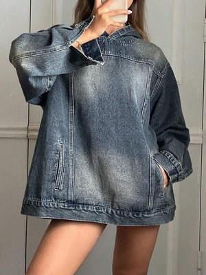 oversize denim washed hoodie pullover【NINE-S0040】