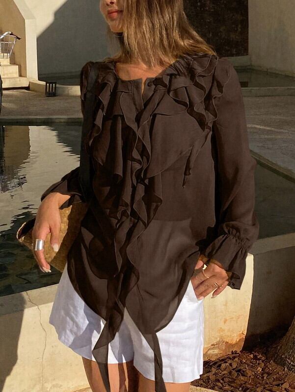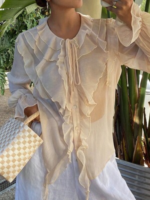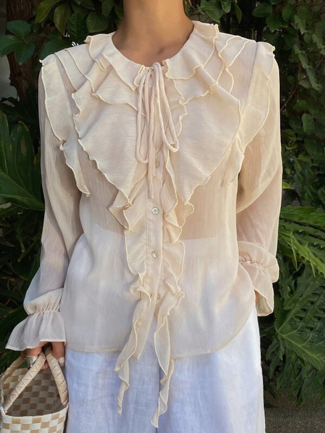 【商品管理番号】 NINE-S0052 【商品説明】 WHITE/BLUE/APRICOT/BEIGE/BROWN 【サイズ】 【S】length:66cm/chest:95cm/shoulder width:37cm/sleeve Length:60cm 【M】length:67cm/chest:99cm/shoulder width:38cm/sleeve Length:61cm 【L】length:68.5cm/chest:105cm/shoulder width:39.5cm/sleeve Length:62cm 【XL】length:70cm/chest:111cm/shoulder width:41cm/sleeve Length:63cm 【モデル】 height:164cm wearing size:M 【素材】 polyester100%