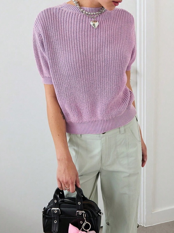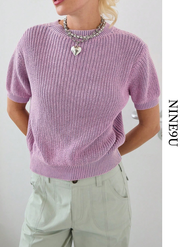 crew-neck pale rib-knit【NINE-S0074】