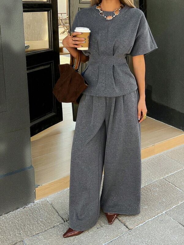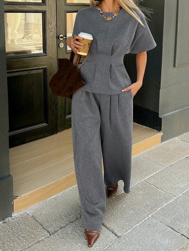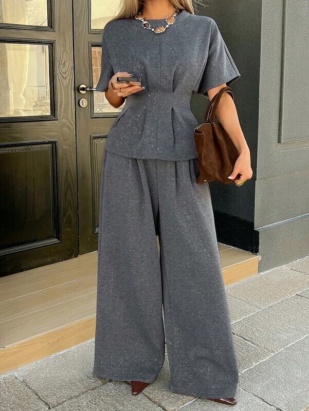 peplum-tops&wide-pants chic 2set【NINE-S0003】