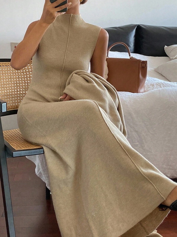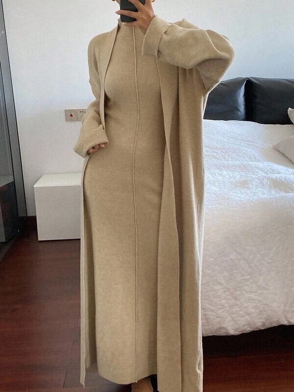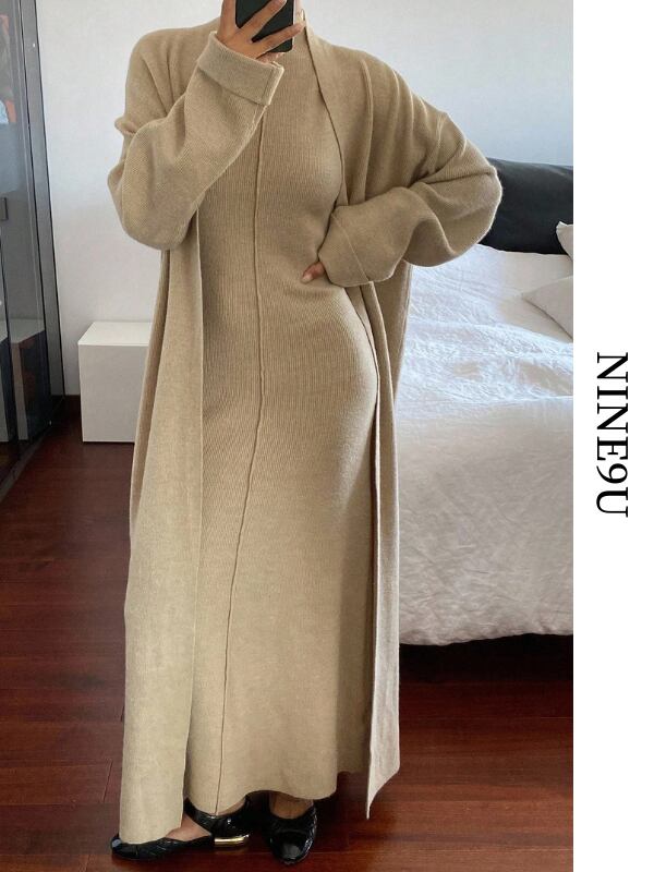 cardigan&one-piece rib-knit relax 2set【NINE-S0035】