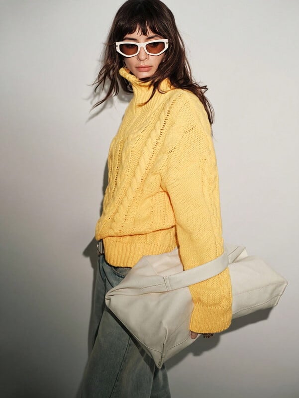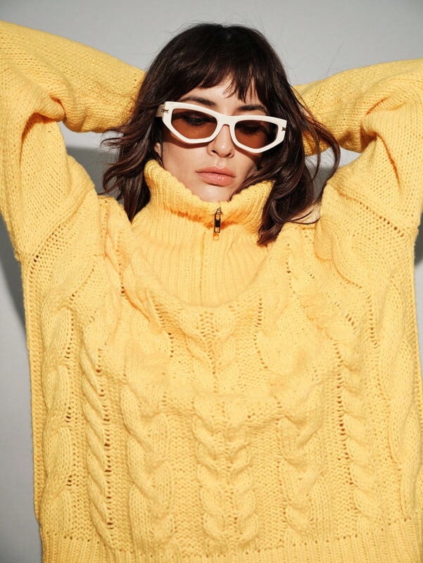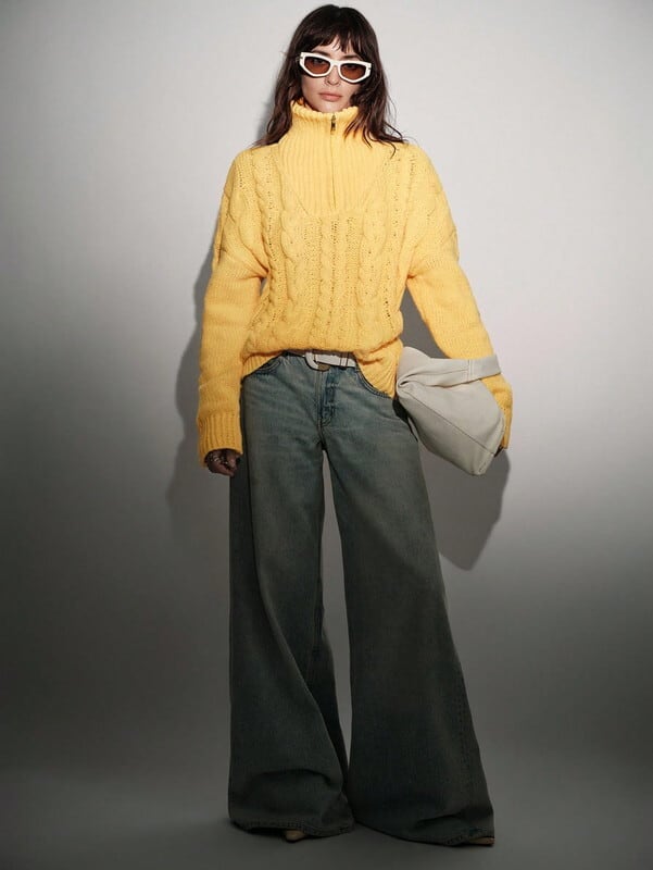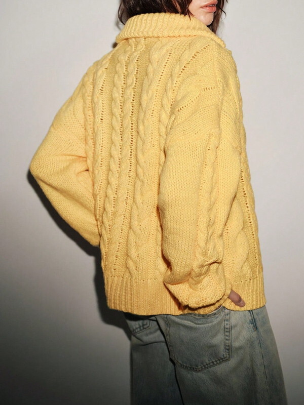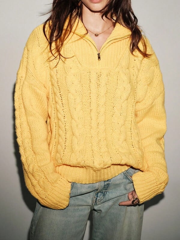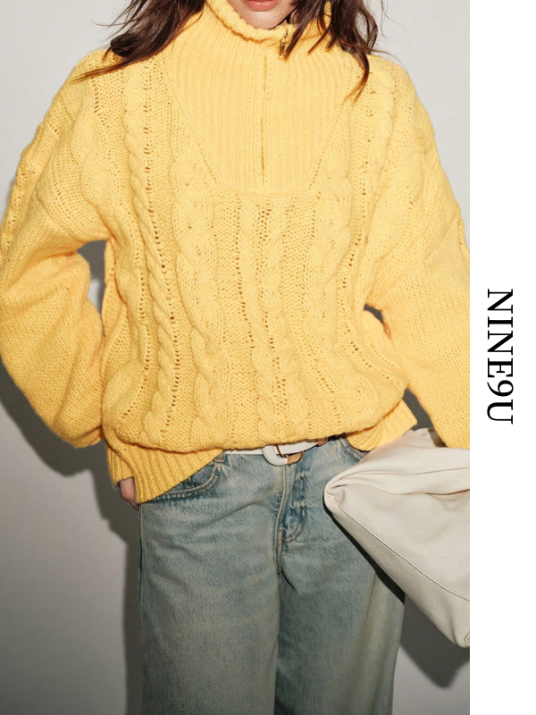 half-zip high-neck oversize cable-knit【NINE-S0085】