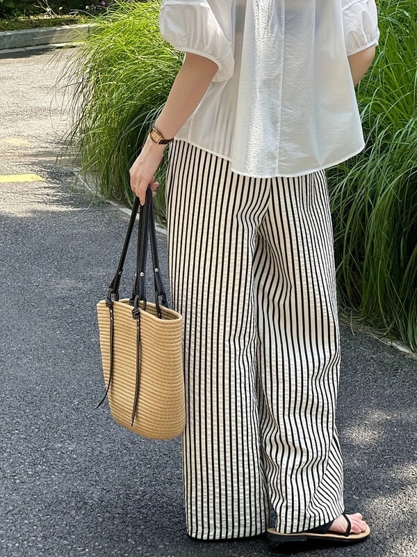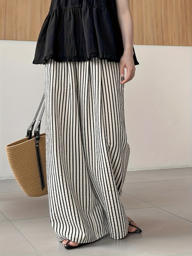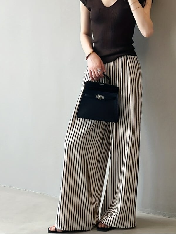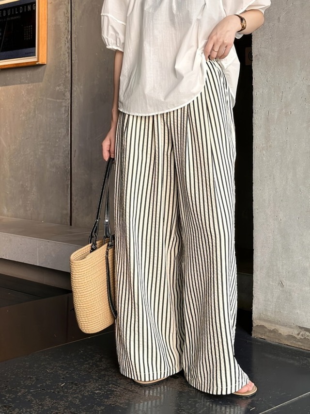 stripe wide-leg oversize pants 2color【NINE-T0116】